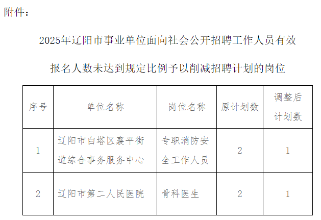 关于2025年辽阳市事业单位面向社会公开招聘工作人员部分招聘岗位削减计划的公告