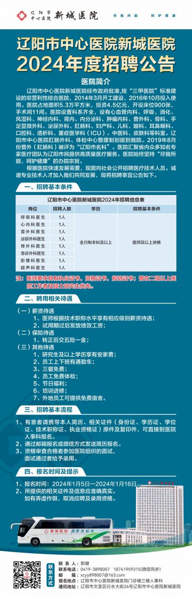 辽阳市中心医院新城医院2024年度招聘8人公告