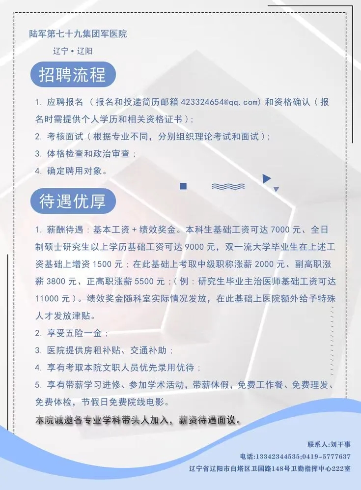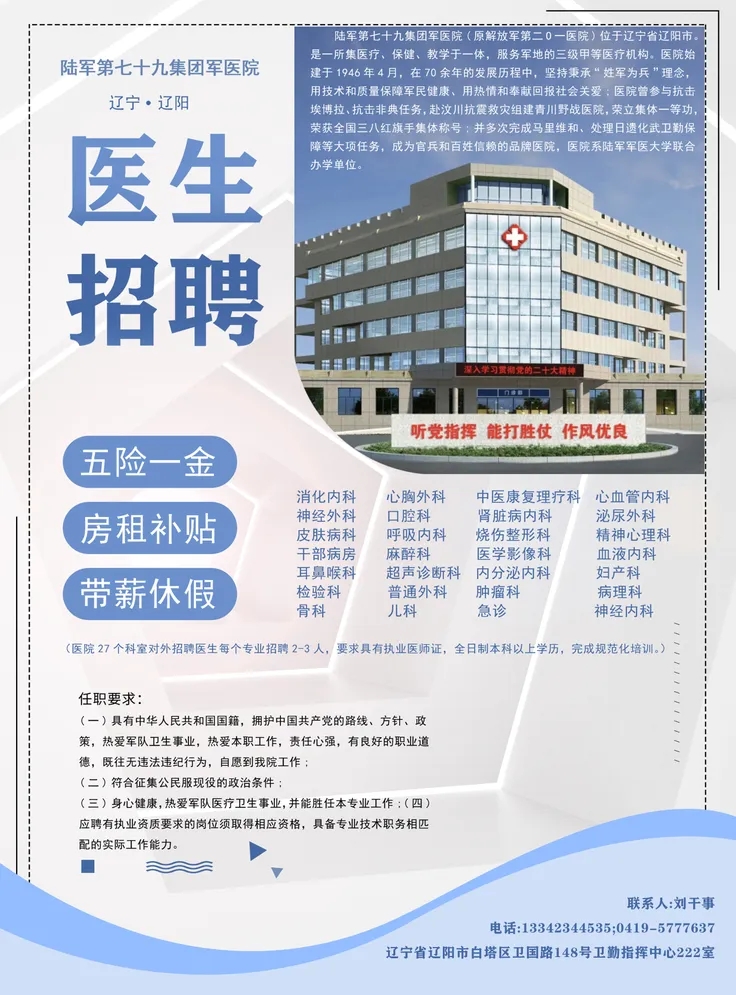 陆军第七十九集团(辽阳市)军医院面向社会公开招聘