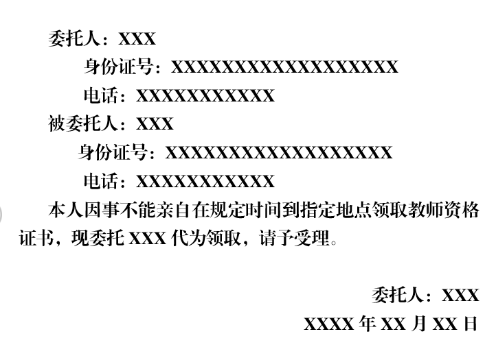 2.委托代领手续:现场出具委托书、委托人身份证复印件和被委托人身份证原件。委托书样式如下:(委托书手写、打印均可,签字处必须手写)