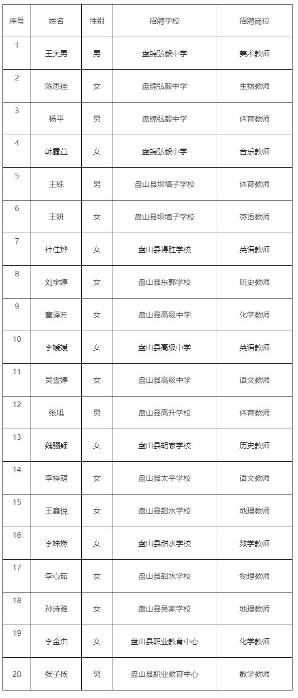 2025年盘山县校园招聘教师拟聘用人员名单
