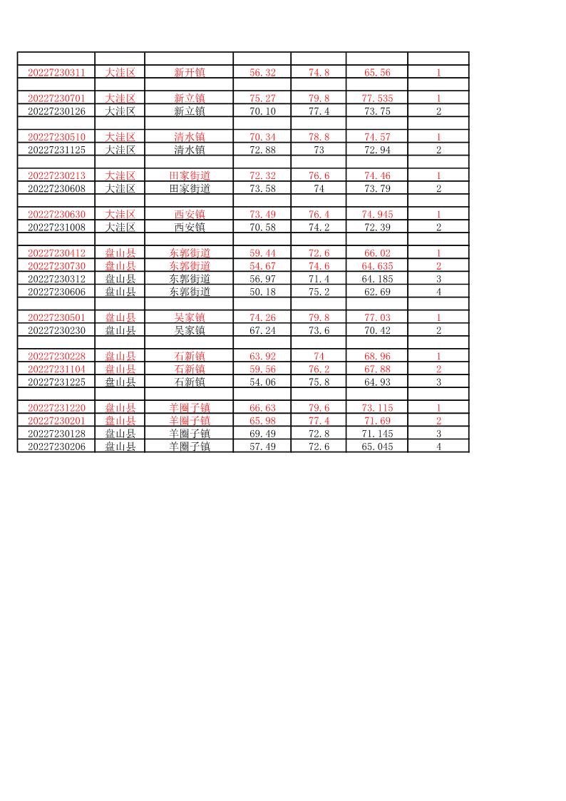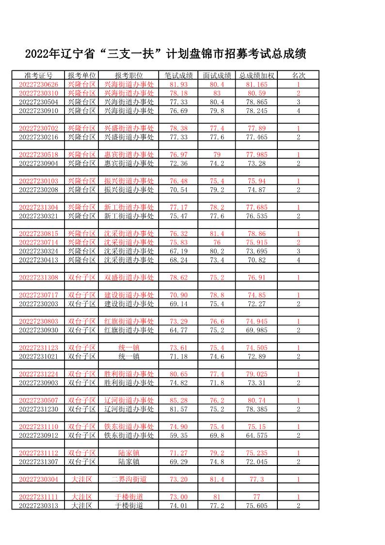 2022年辽宁省“三支一扶”计划盘锦市招募考试总成绩