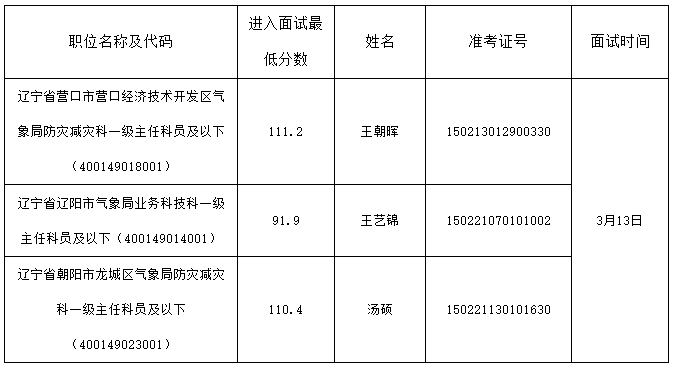 请递补考生按照《辽宁省气象局2026年度考试录用参照公务员法管理事业单位机关工作人员面试公告》有关要求,尽快准备相关材料,于2026年3月4日15:00前进行面试确认,提交资格复审材料,并按要求参加资格复审和面试。