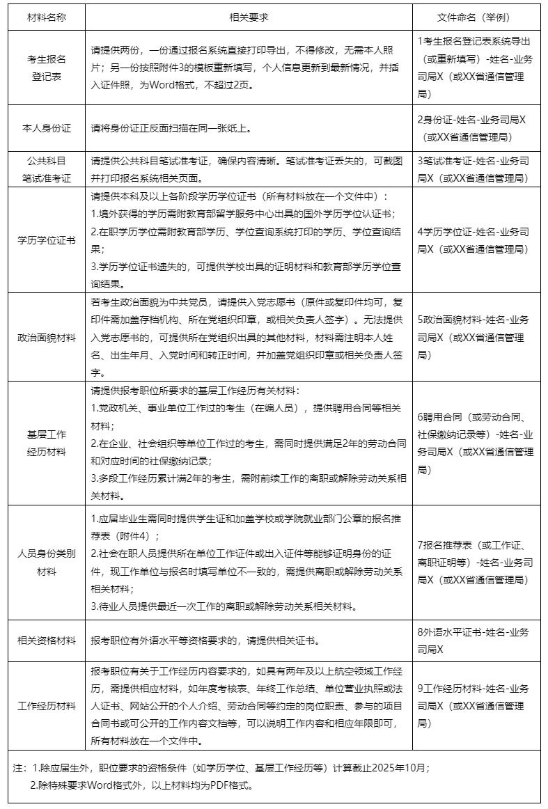 请参加面试的考生于1月26日(周一)24时前(以收到邮件时间为准)将以下材料扫描件用压缩包形式(25M以内)发送至zhaopin@miit.gov.cn,邮件标题及附件压缩包命名为“姓名-业务司局X(或XX省通信管理局)资格复审材料”,收到自动回复邮件即代表我们收到材料。逾期未按要求提供资格复审材料的,视为放弃面试资格。如需补交材料或资格复审不通过,我们将电话反馈信息。提供虚假材料的,将被取消面试资格,我们将视情节上报中央公务员主管部门记入考生诚信档案。我们承诺资格复审材料只用于公务员录用相关工作。面试时请考生备齐资格复审材料原件。