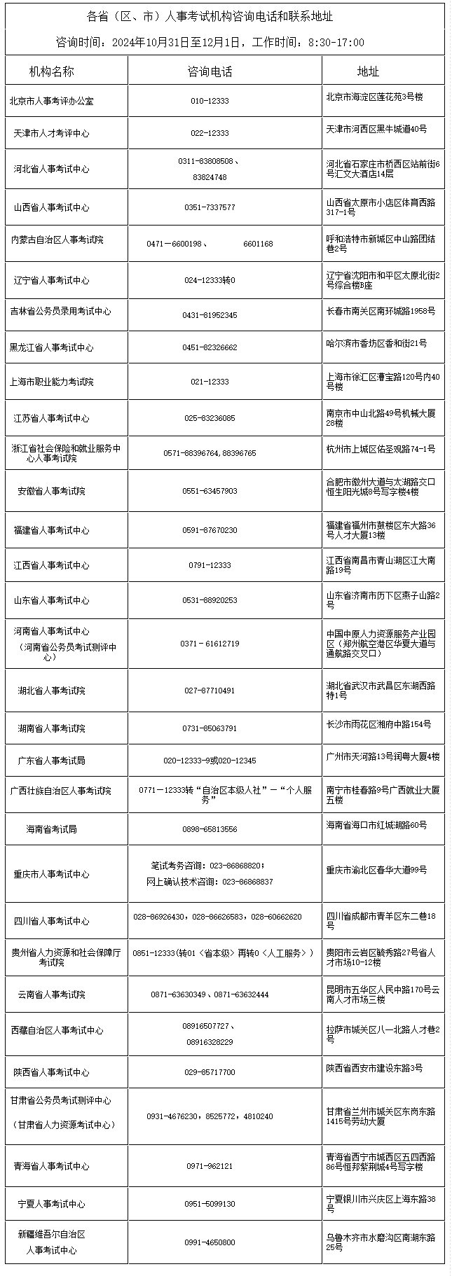 中央机关及其直属机构2025年度考试录用公务员报名确认及准考证打印咨询电话