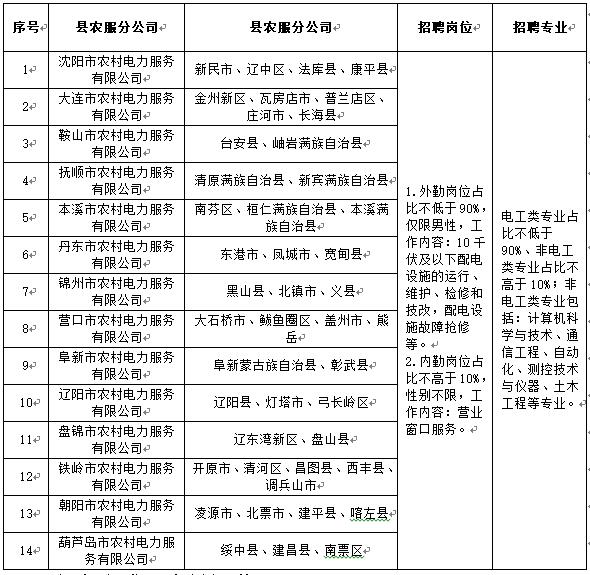 因业务发展需要,辽宁省各市农村电力服务有限公司联合开展2020年招聘工作,现将有关事项公告如下。