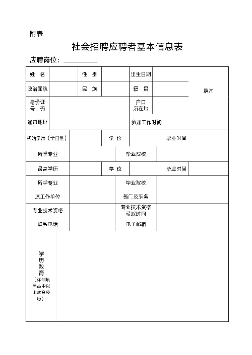 1、报名表:下载并填写提交《社会招聘应聘者基本信息表》电子版。