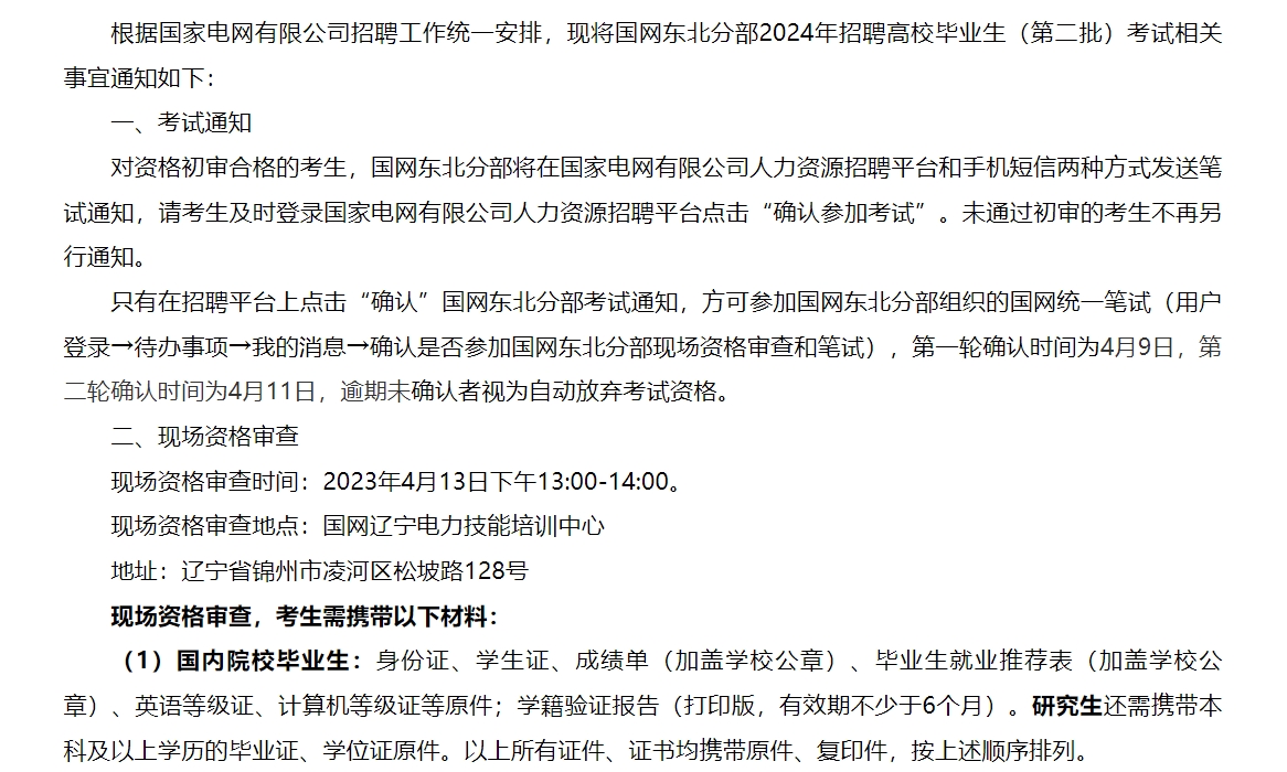 国网东北分部关于2024年招聘高校毕业生考试的通知(第二批)