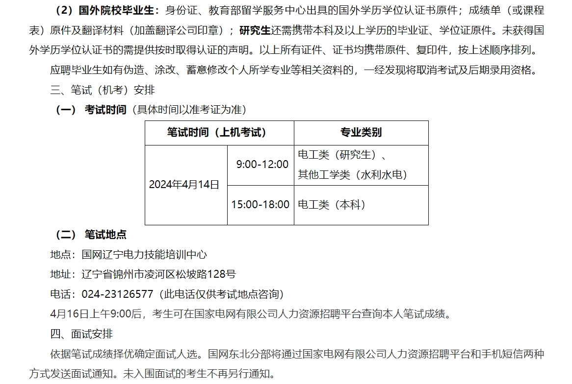 国网辽宁省电力有限公司2024年高校毕业生招聘考试公告(第二批)