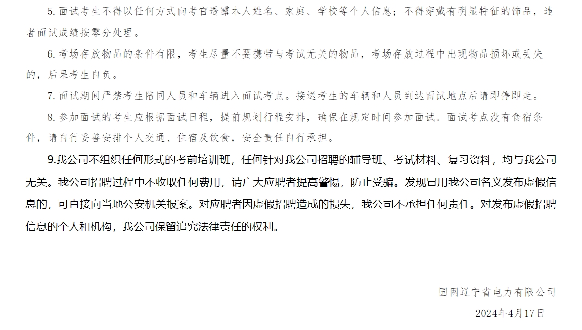 国网辽宁省电力有限公司2024年高校毕业生招聘(第二批)面试安排通知