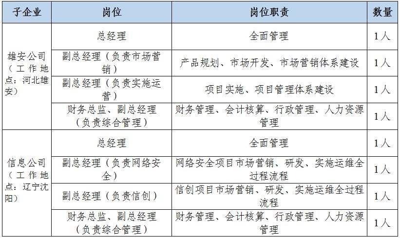 为进一步增强子企业经营活力,深化市场化选人用人机制改革,健全市场化经营机制,辽宁交投艾特斯技术股份有限公司拟对信息公司及雄安公司面向全国公开招聘八名职业经理人,现公告如下: