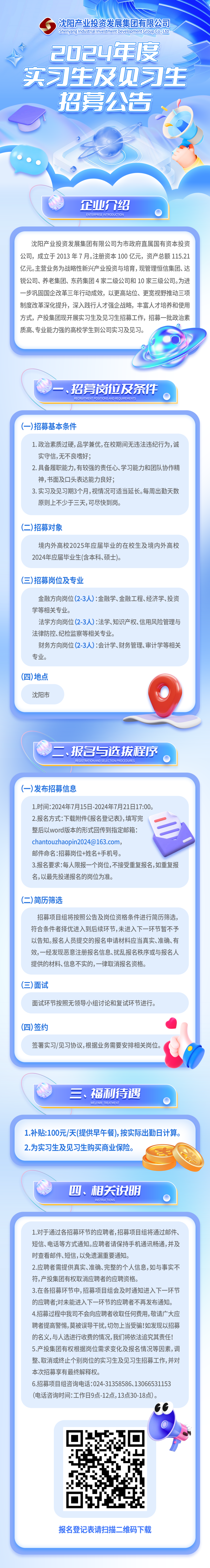 沈阳产业投资发展集团有限公司2024年度实习生及见习生招募6-9人公告