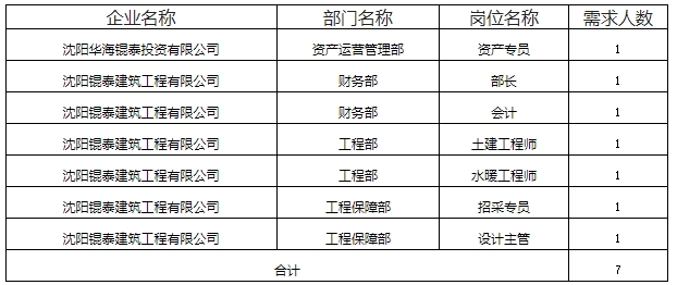 3.本次选聘发布公告、网络报名、资格审查、笔试、面试、体检、背景调查由第三方负责,最终解释权归沈阳华海锟泰投资有限公司所有。