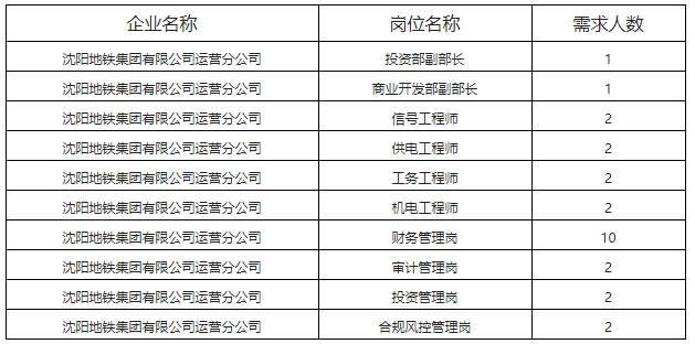 本次招聘公告发布渠道为沈阳市国资委官网、阳光国企、沈阳地铁官方网站,其他渠道均为转载。