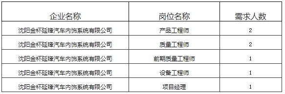 附件5:《沈阳金杯延锋汽车内饰系统有限公司2024年“引才行动”岗位信息表》