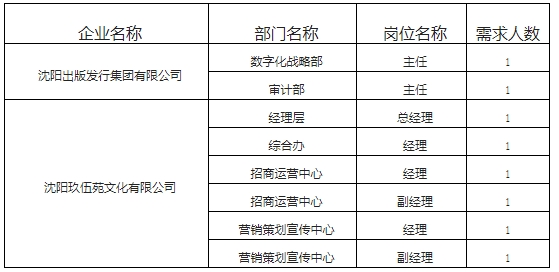 具体岗位职责和任职资格详见附件1《沈阳出版发行集团2024年“引才行动”岗位信息表》