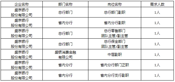 具体岗位职责和任职资格详见附件《盛京银行2024年“引才行动”岗位信息表》