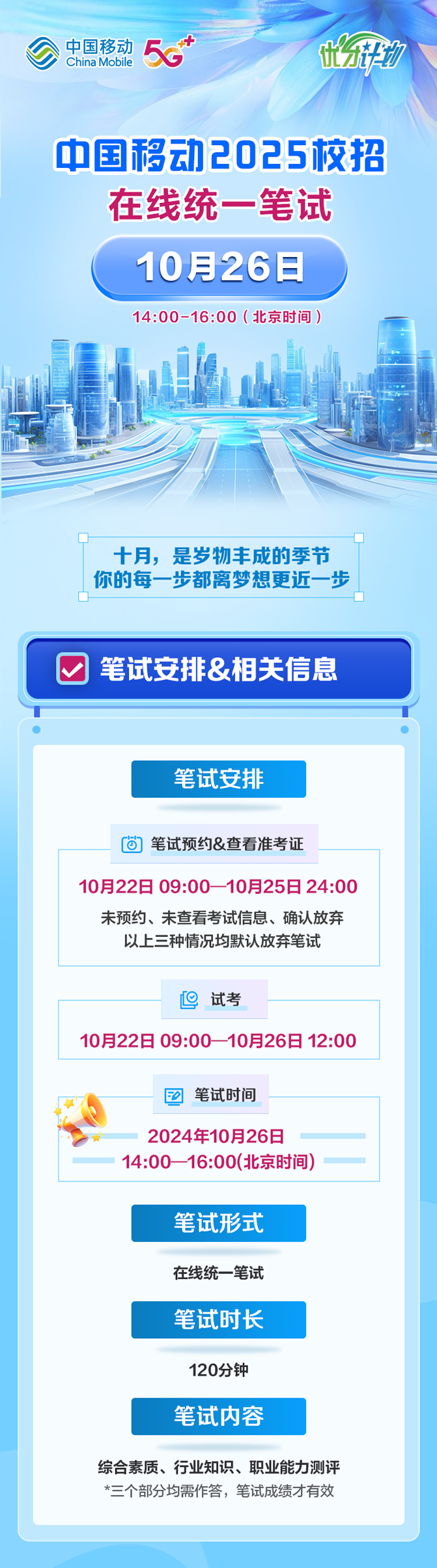 10月26日 | 中国移动2025校招在线统一笔试邀你参加!