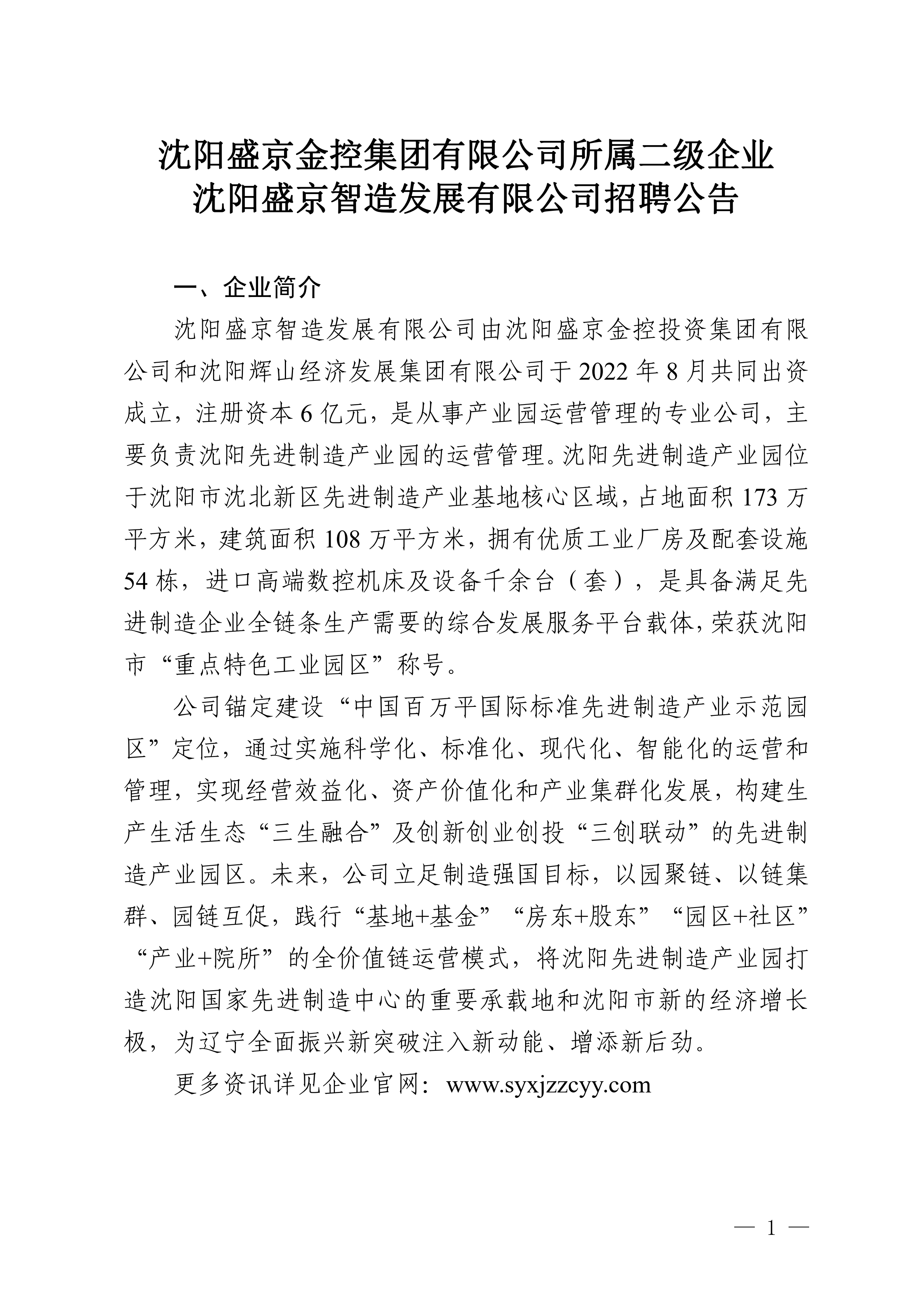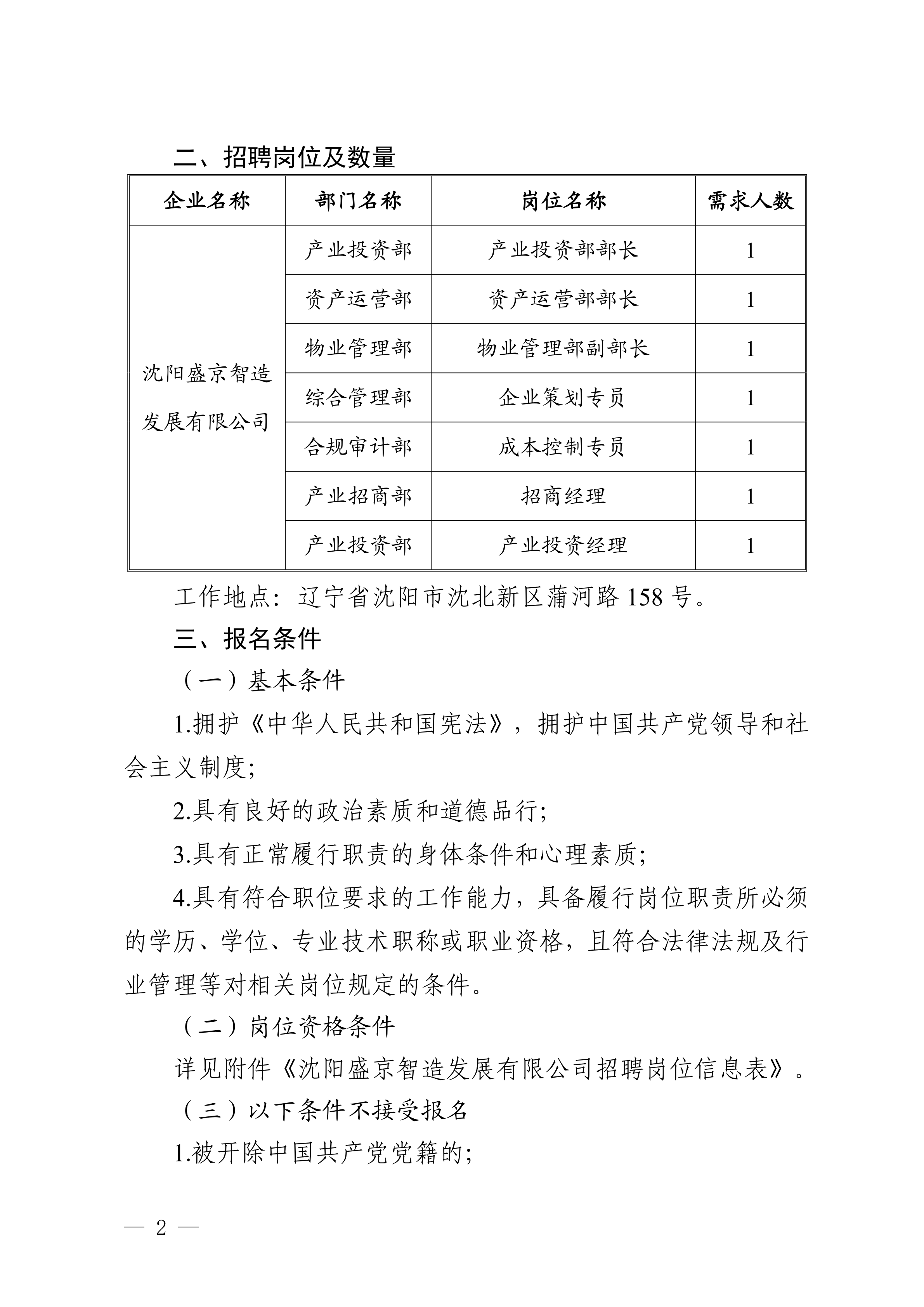 沈阳盛京金控集团有限公司所属二级企业沈阳盛京智造发展有限公司招聘7人公告