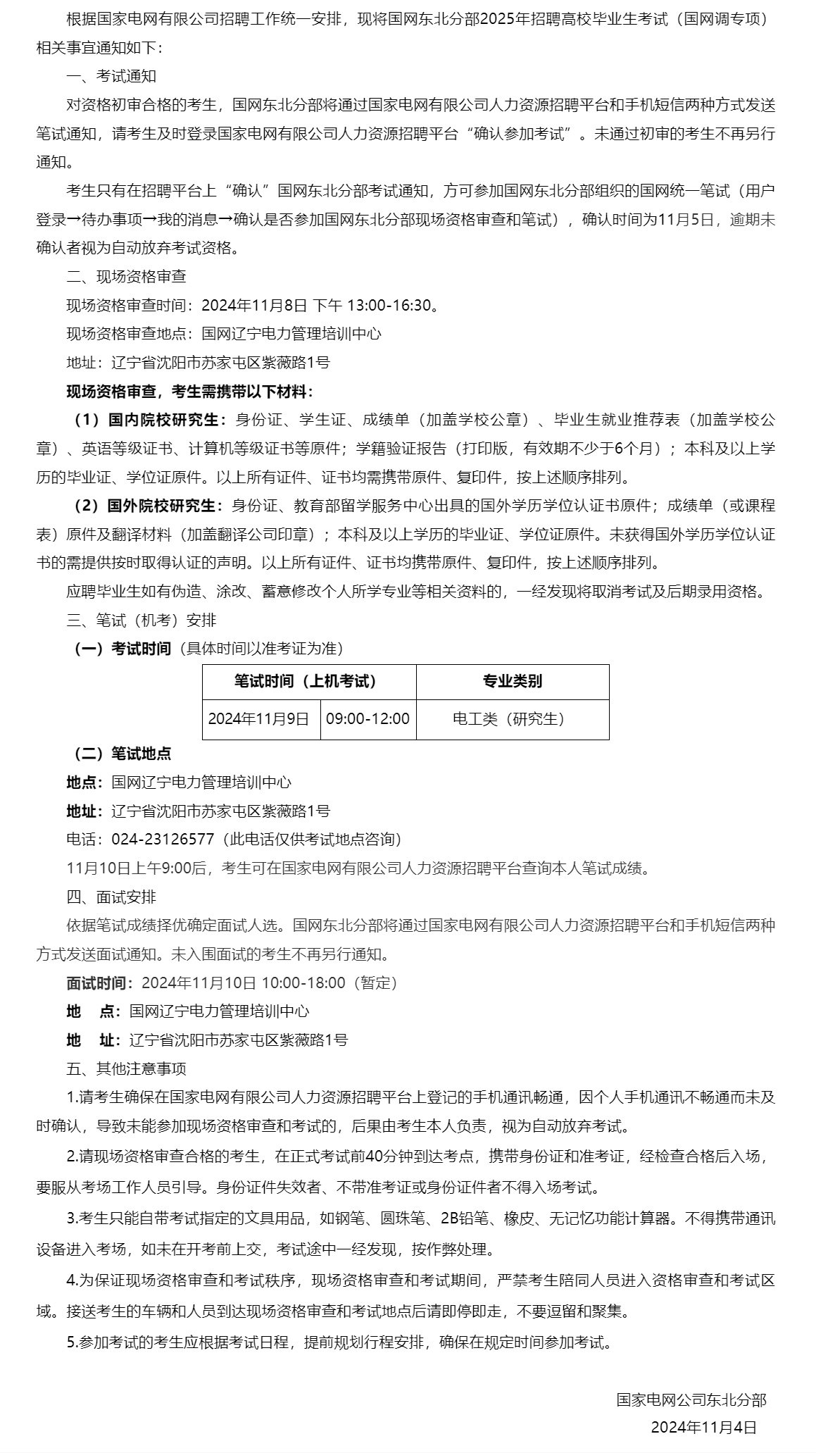国网东北分部关于2025年招聘高校毕业生考试的通知(国网调专项)
