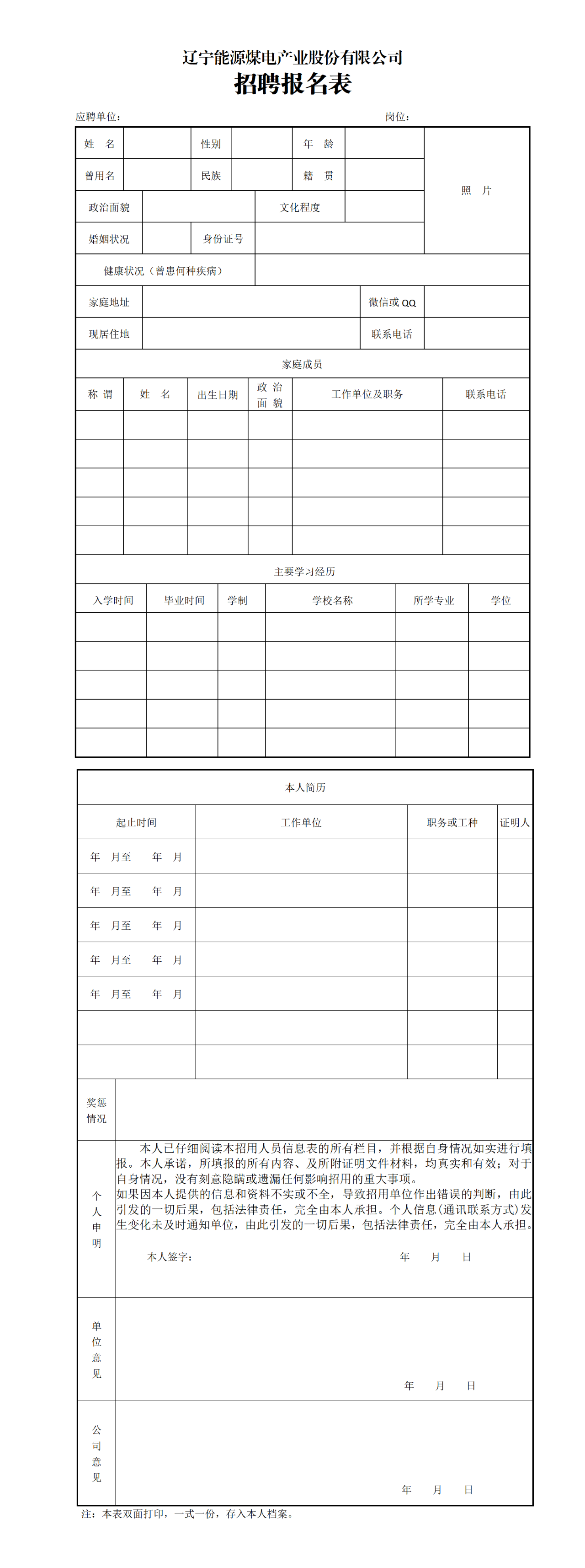 附件2:辽宁能源煤电产业股份有限公司招聘报名表.docx(点击下载)
