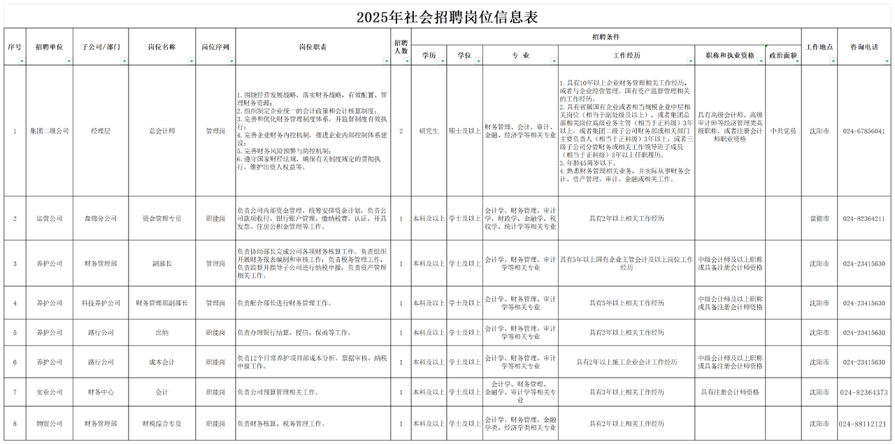 8.符合具体招聘岗位所需要的其他条件(详见《辽宁省交投集团2025年招聘岗位信息表》,招聘条件要求具有相关工作经历的,年限计算的截止时间为2025年7月31日)。