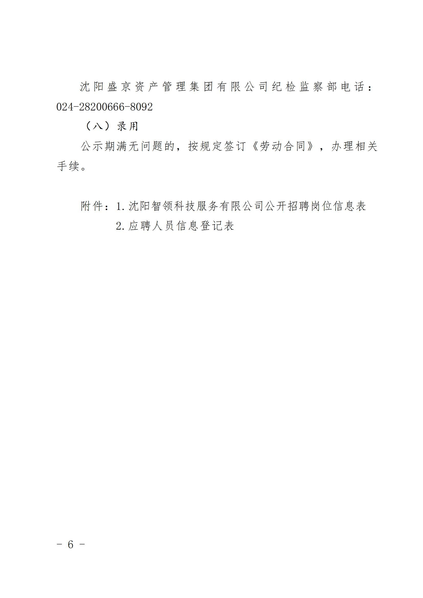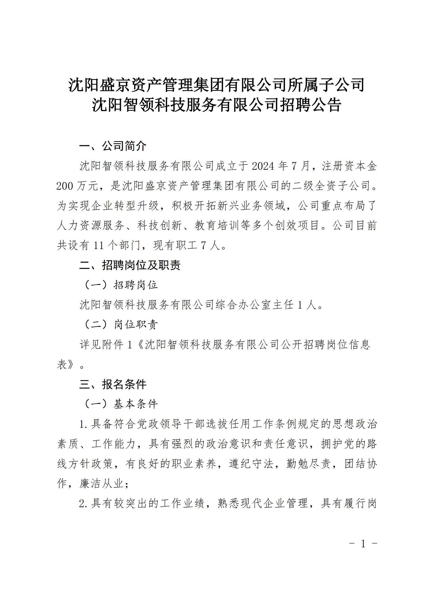 沈阳盛京资产管理集团有限公司所属子公司沈阳智领科技服务有限公司招聘1人公告