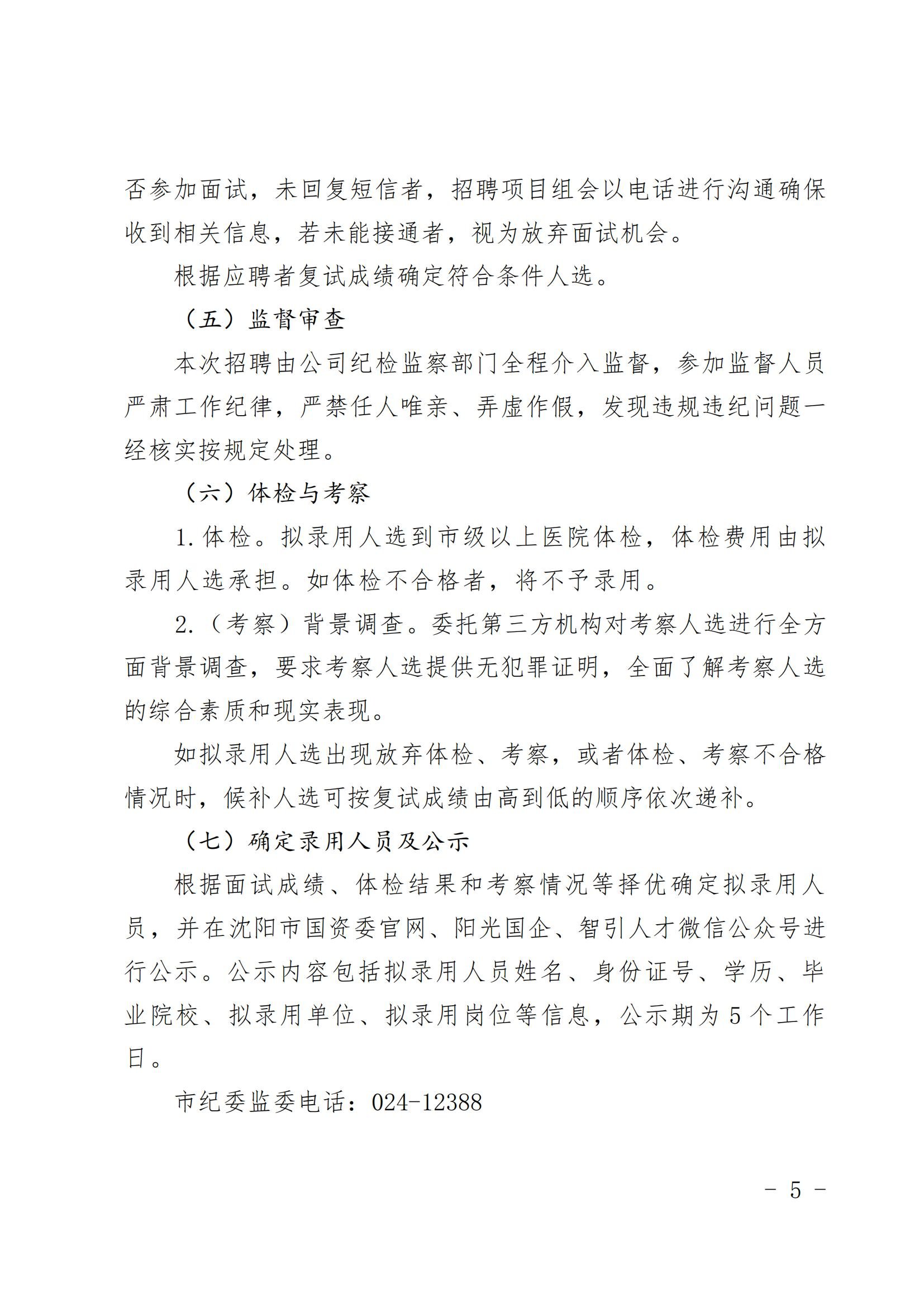 沈阳市城市建设投资集团有限公司所属沈阳城投资产经营有限公司招聘7人公告