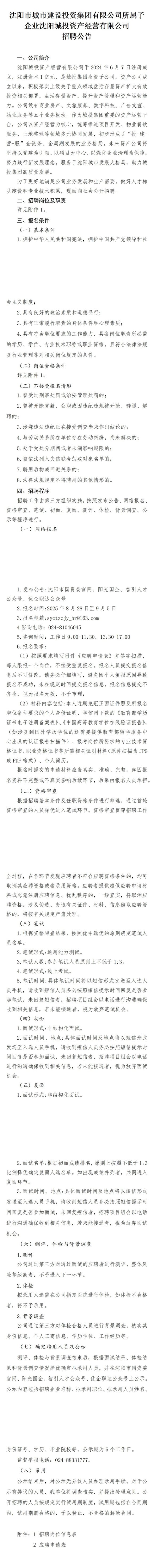 沈阳市城市建设投资集团有限公司所属沈阳城投资产经营有限公司招聘7人公告