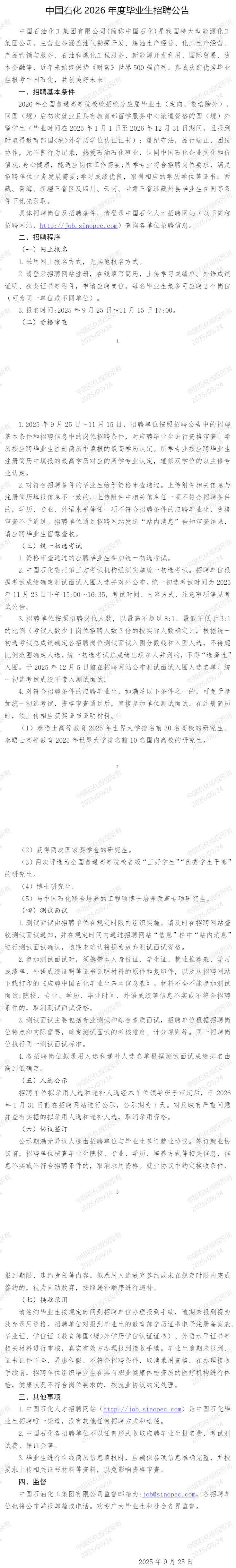 中国石化2026年度毕业生招聘统一初选考试公告