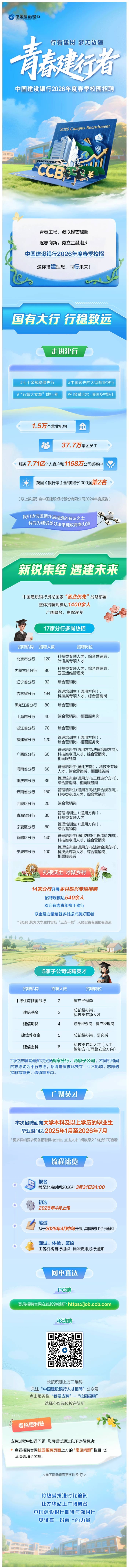 中国建设银行2026年度春季校园招聘1400余人正式启动(涉辽32人)