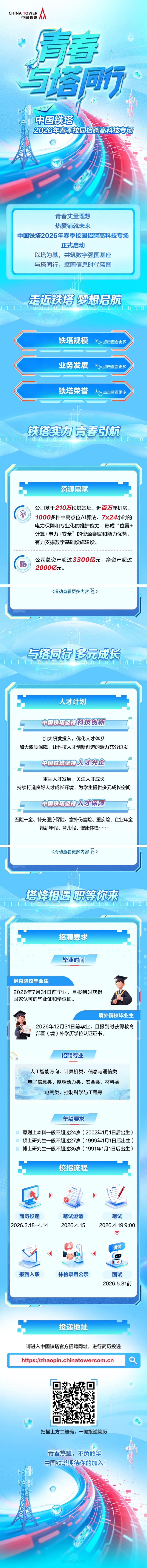 青春与塔同行 | 中国铁塔2026年春季校园招聘正式启动!