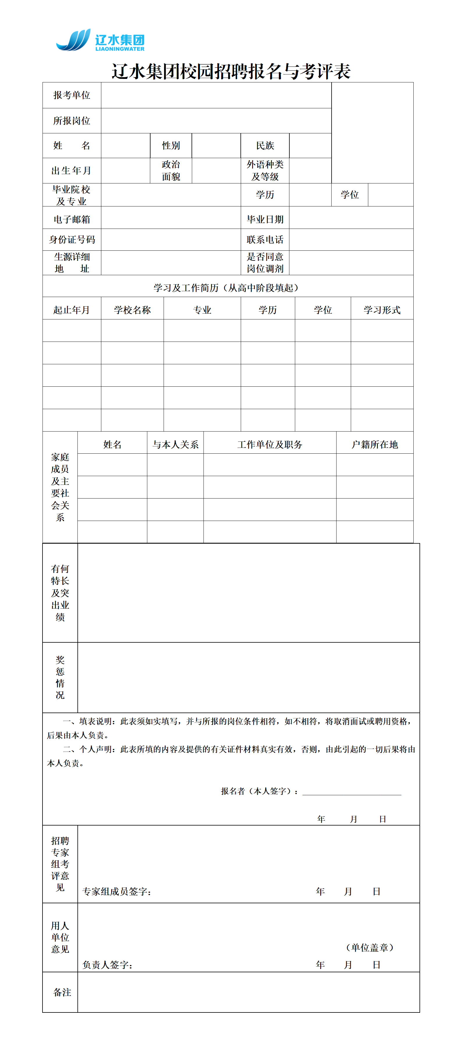 2.报名方式:线上报名,应聘人员在指定地址投递简历:szyjtOCR2025-2026-02.zhiye.com。请如实填写个人相关信息,将《辽水集团校园招聘报名与考评表》(附件2)、学籍备案、各阶段成绩单、获奖证书等报名材料,一并上传至指定地址,每人限报一个岗位。