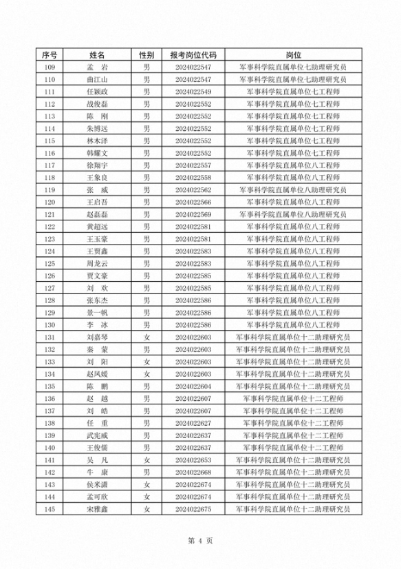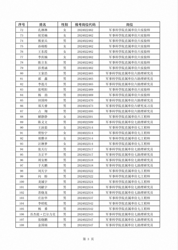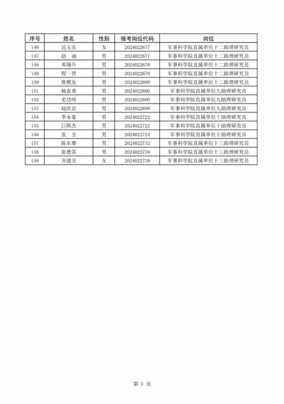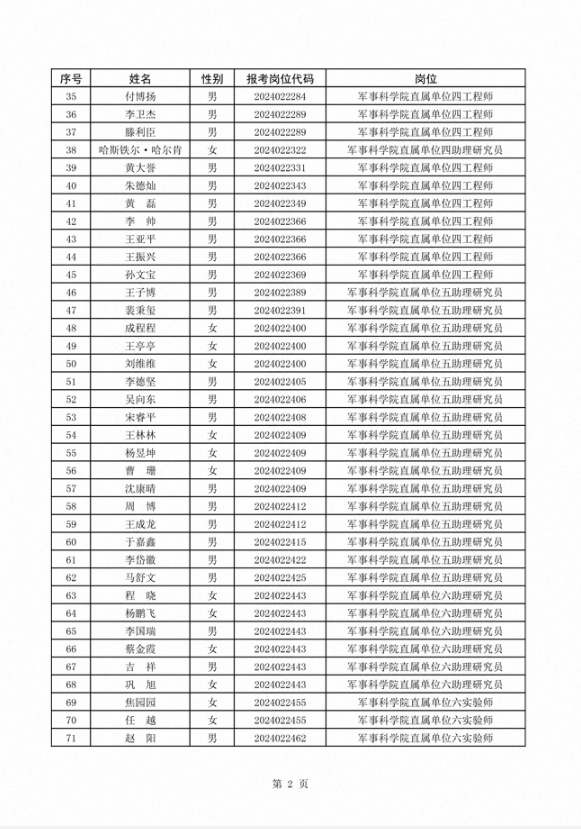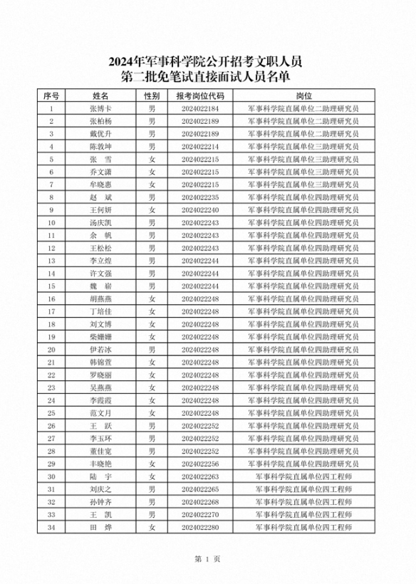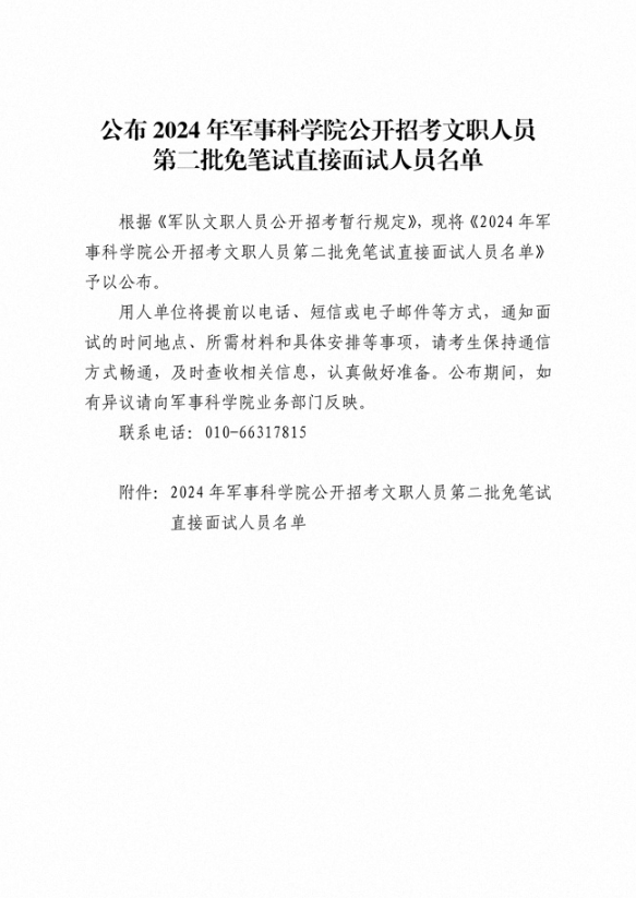 公布2024年军事科学院公开招考文职人员第二批免笔试直接面试人员名单