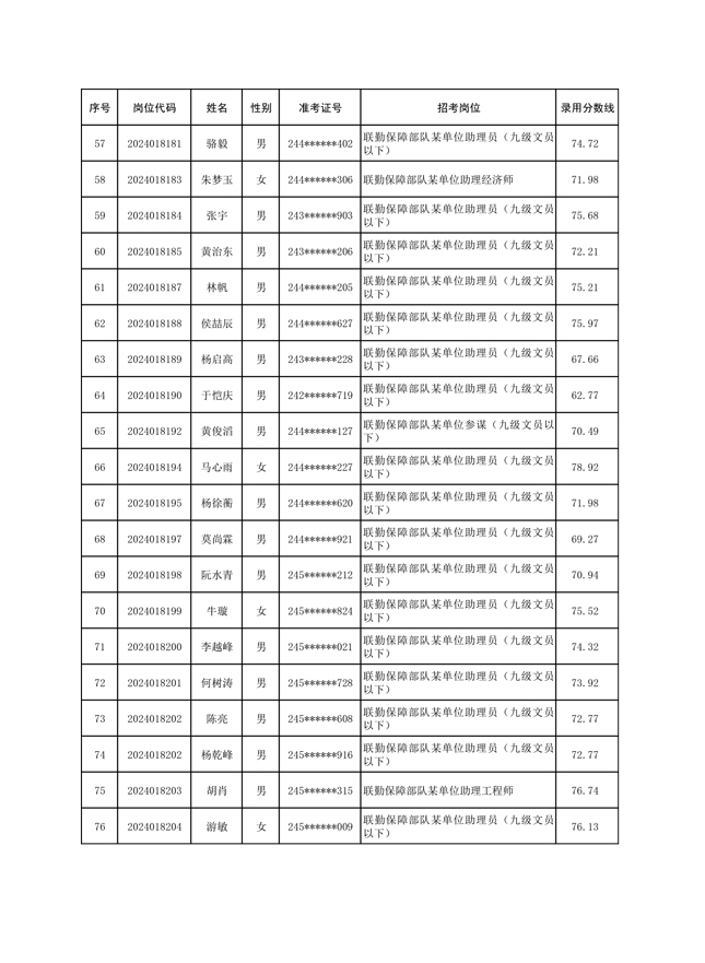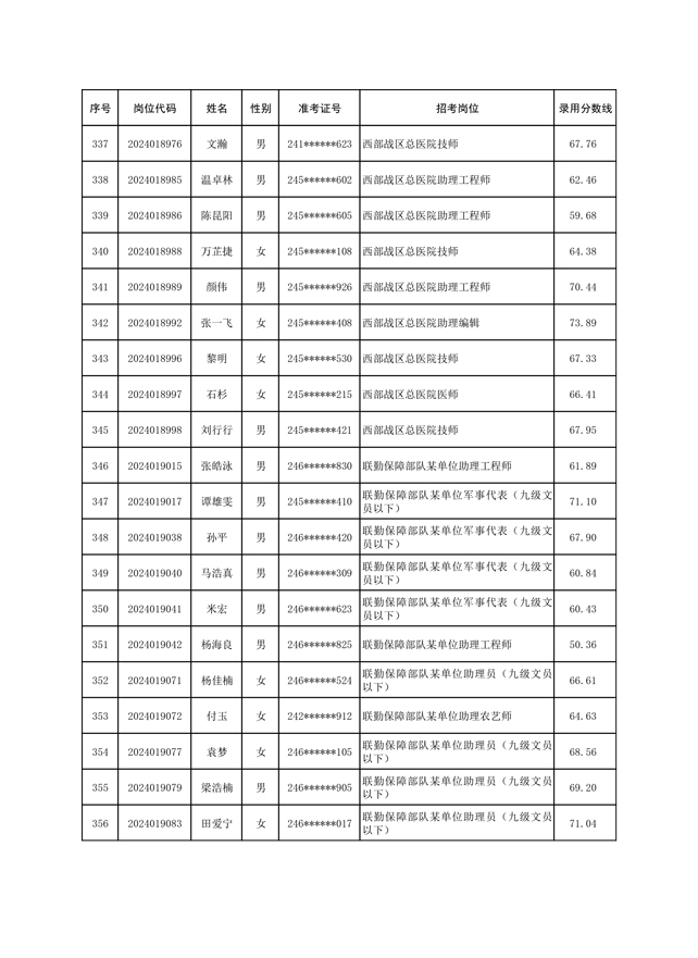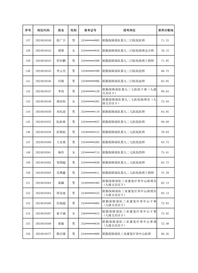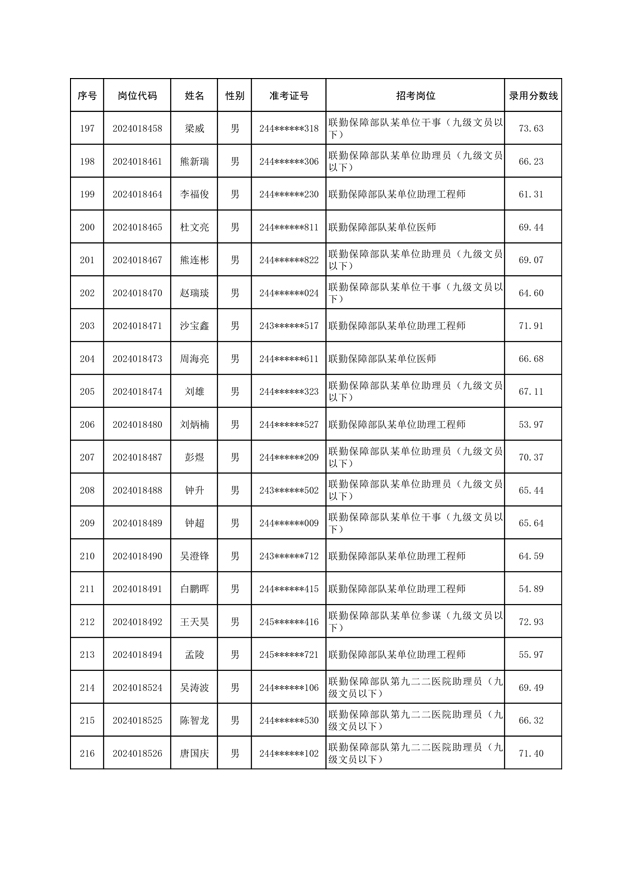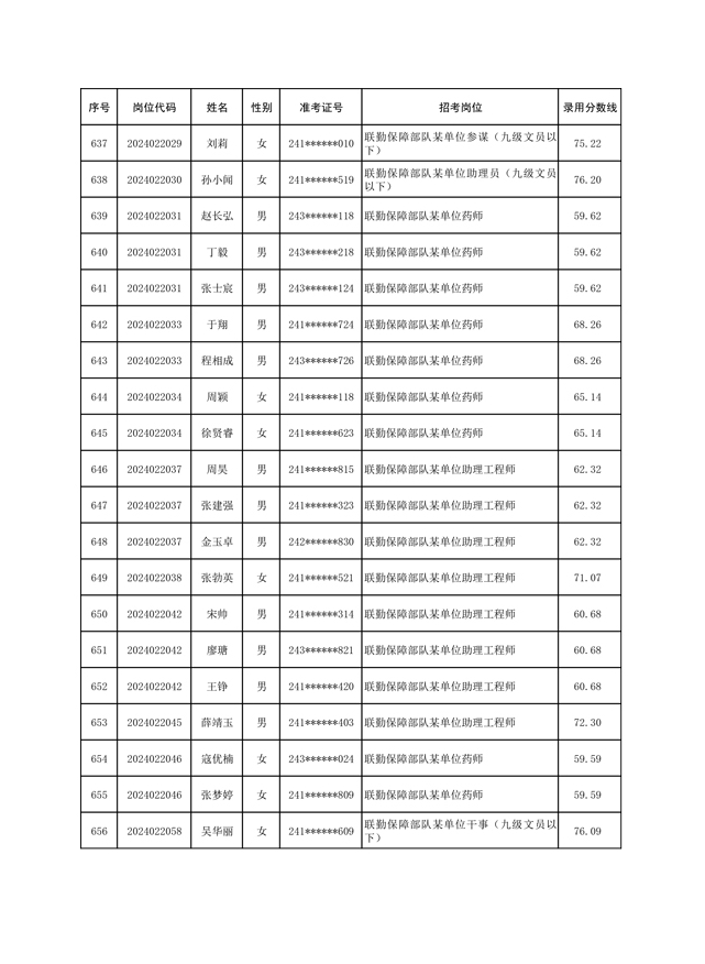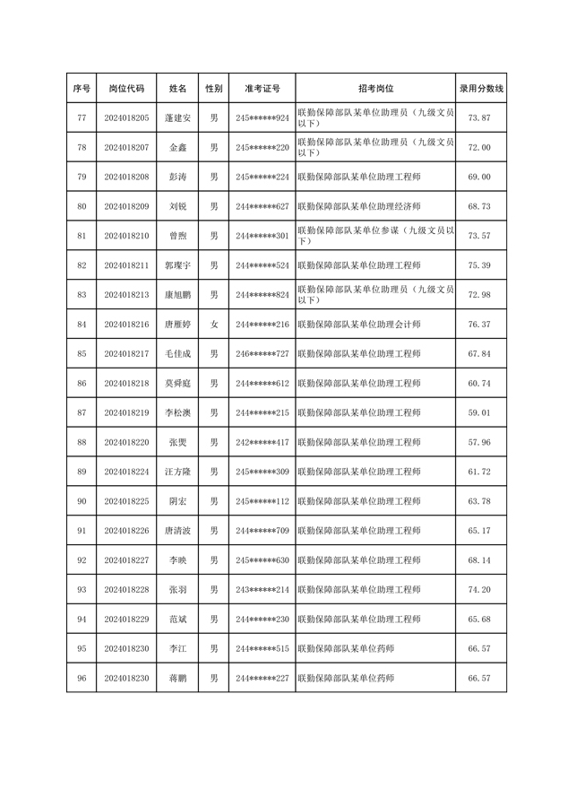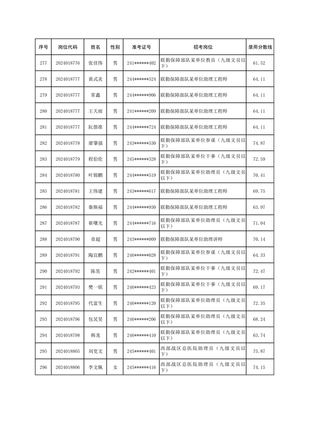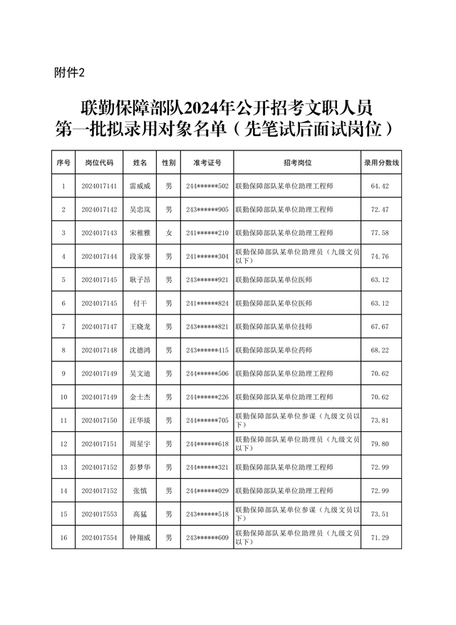 公示联勤保障部队2024年公开招考文职人员第一批拟录用对象名单