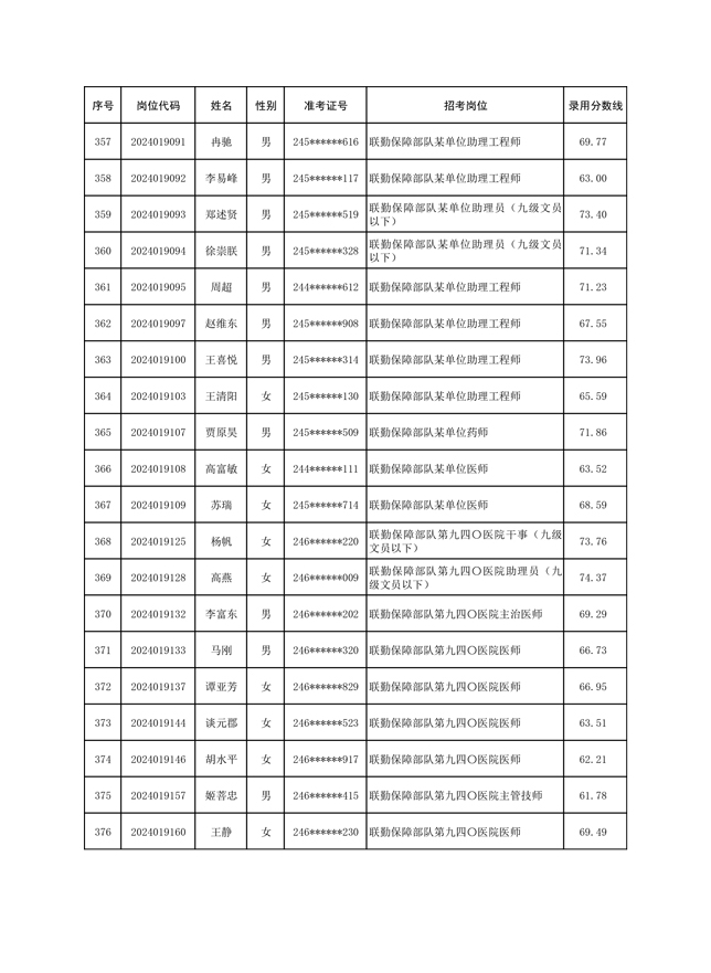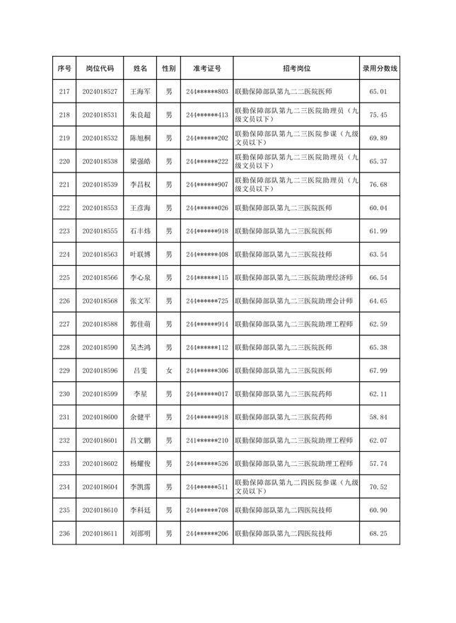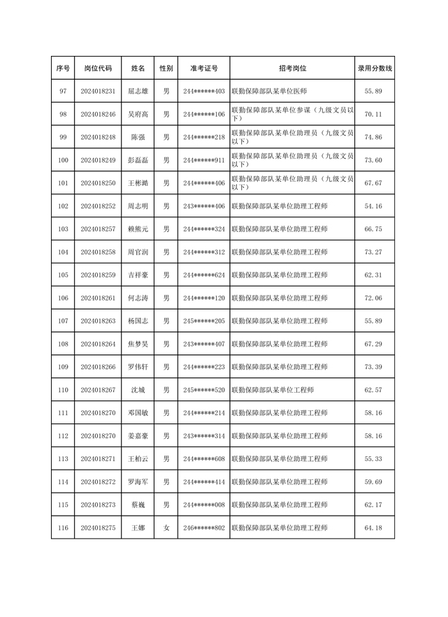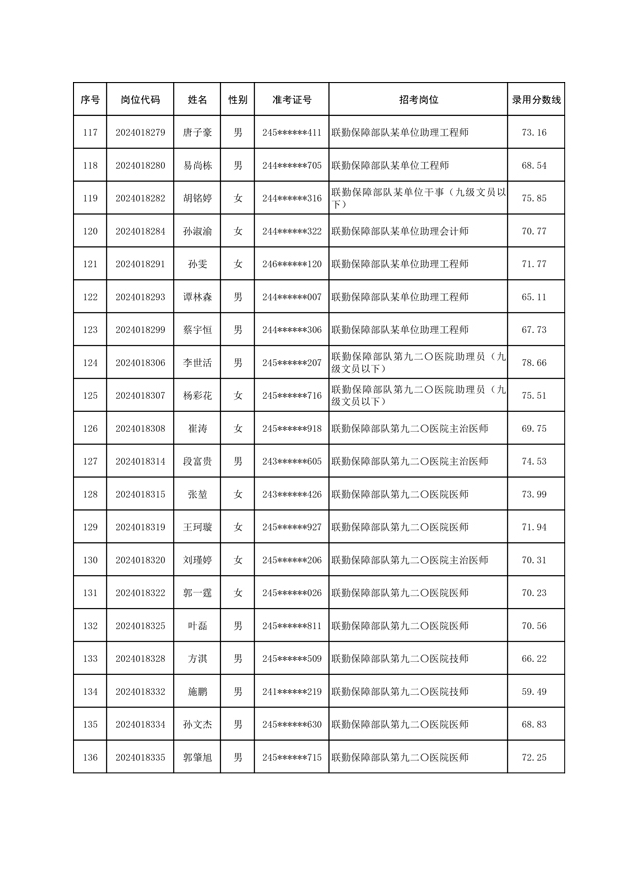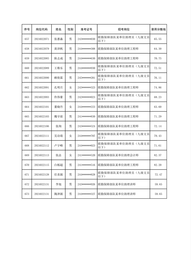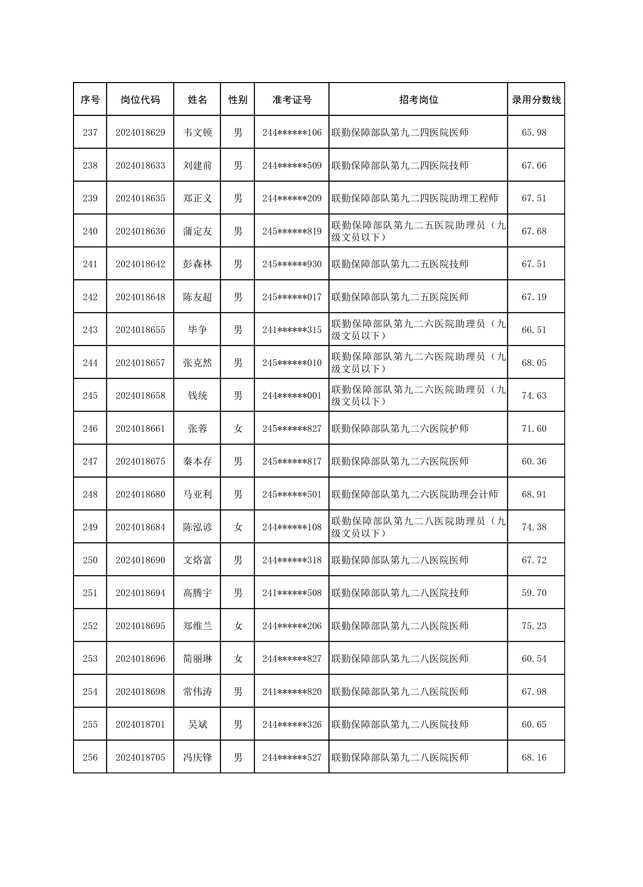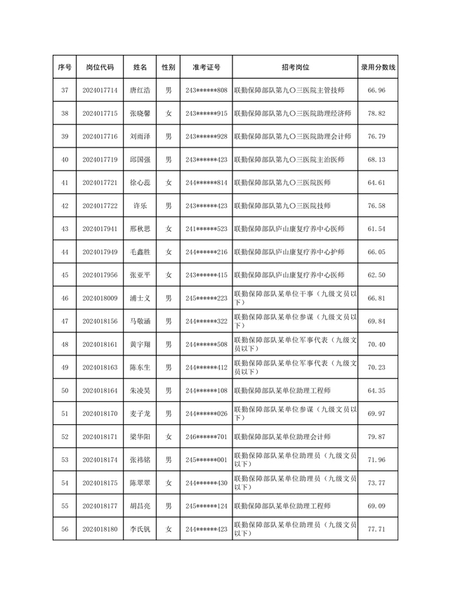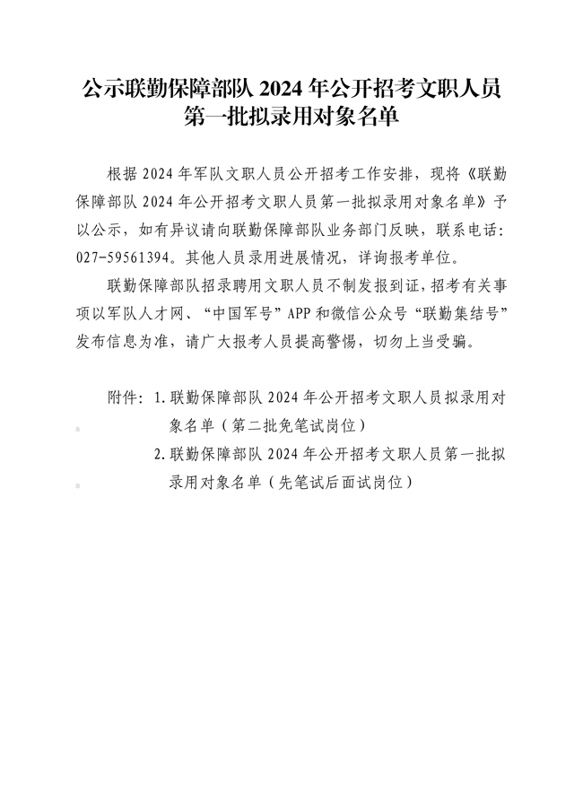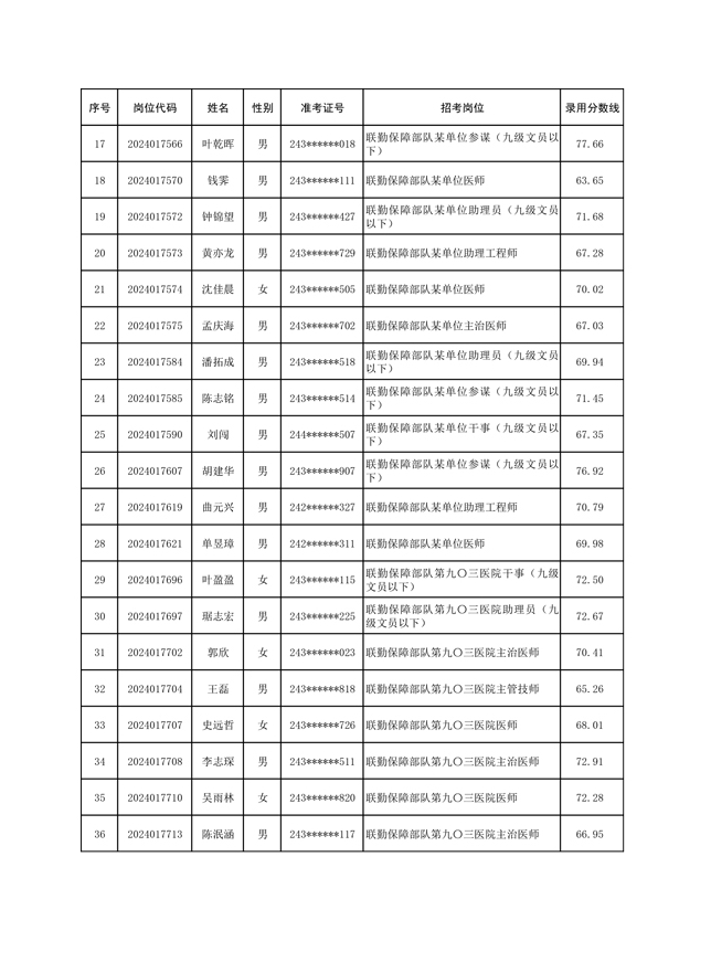 公示联勤保障部队2024年公开招考文职人员第一批拟录用对象名单