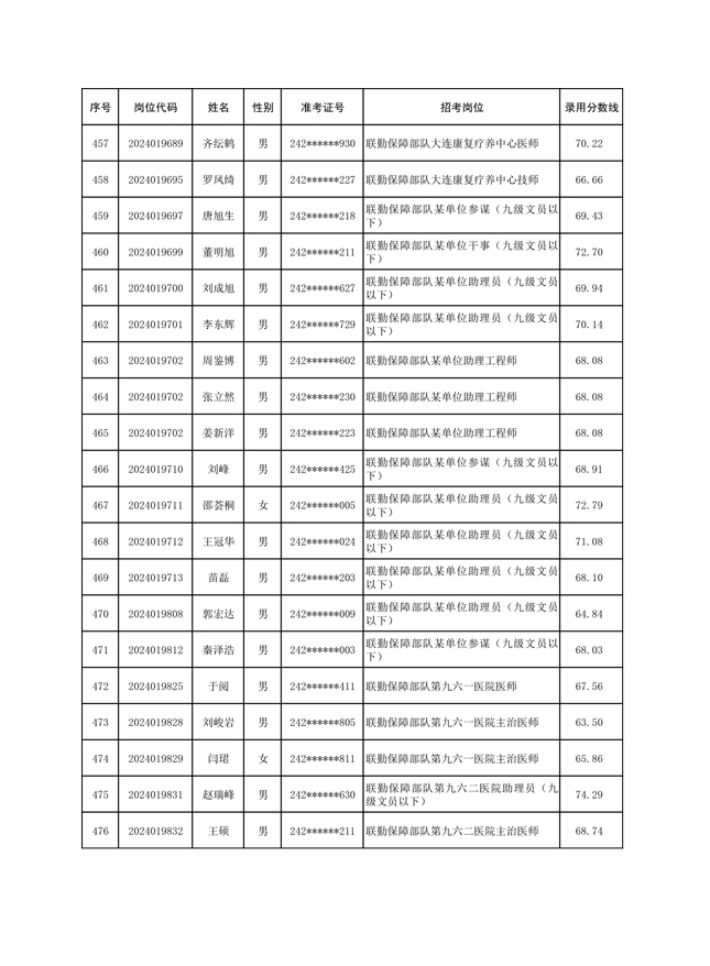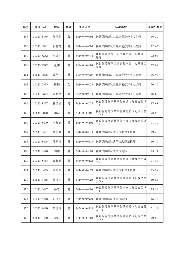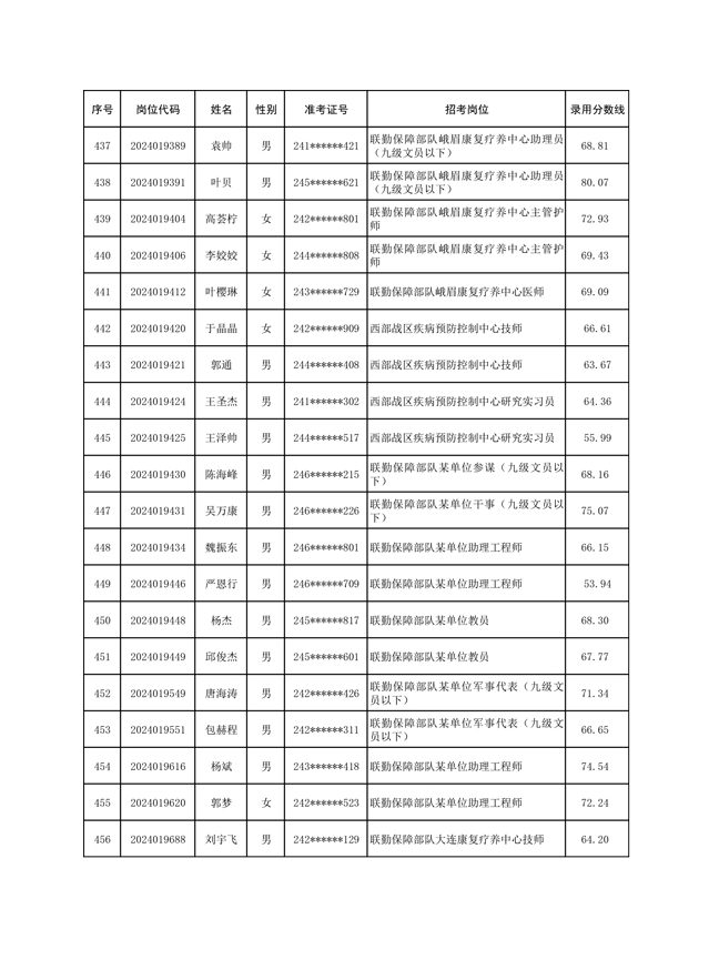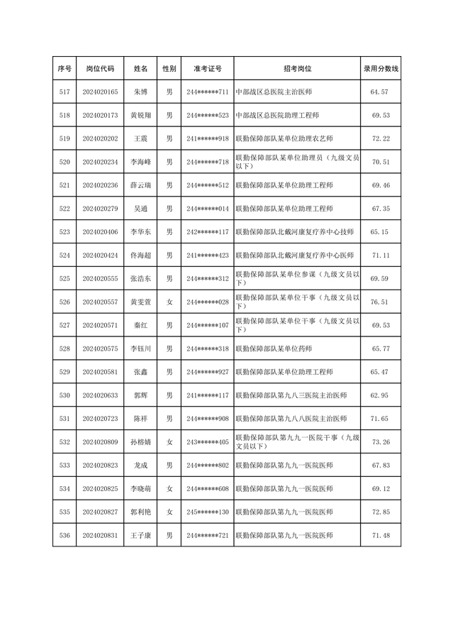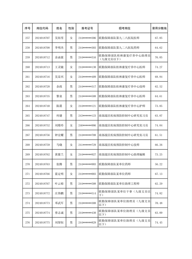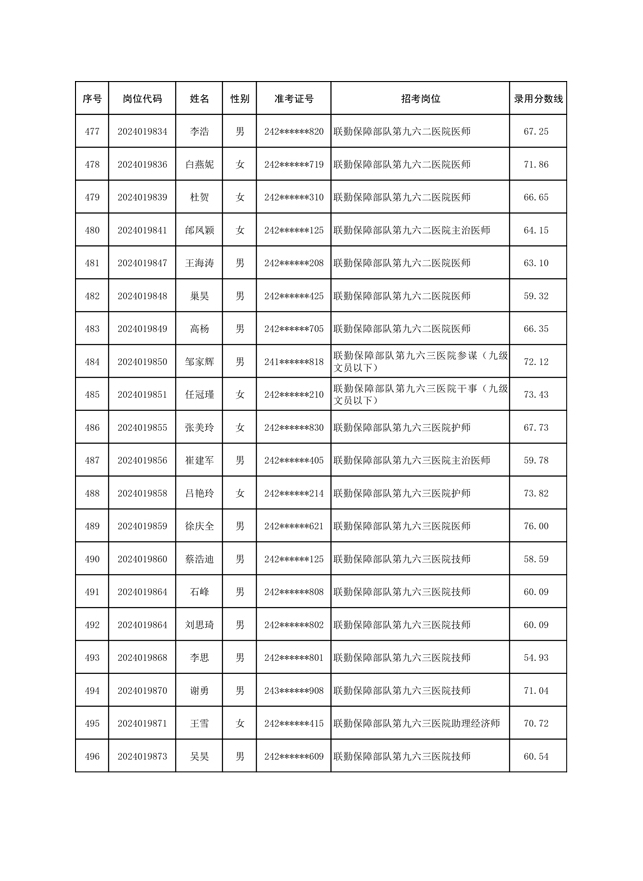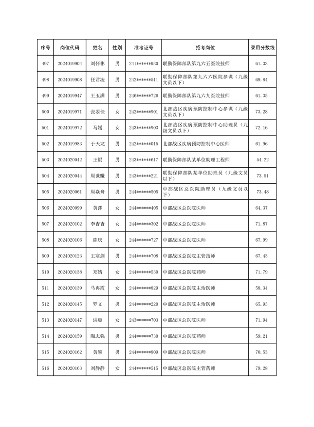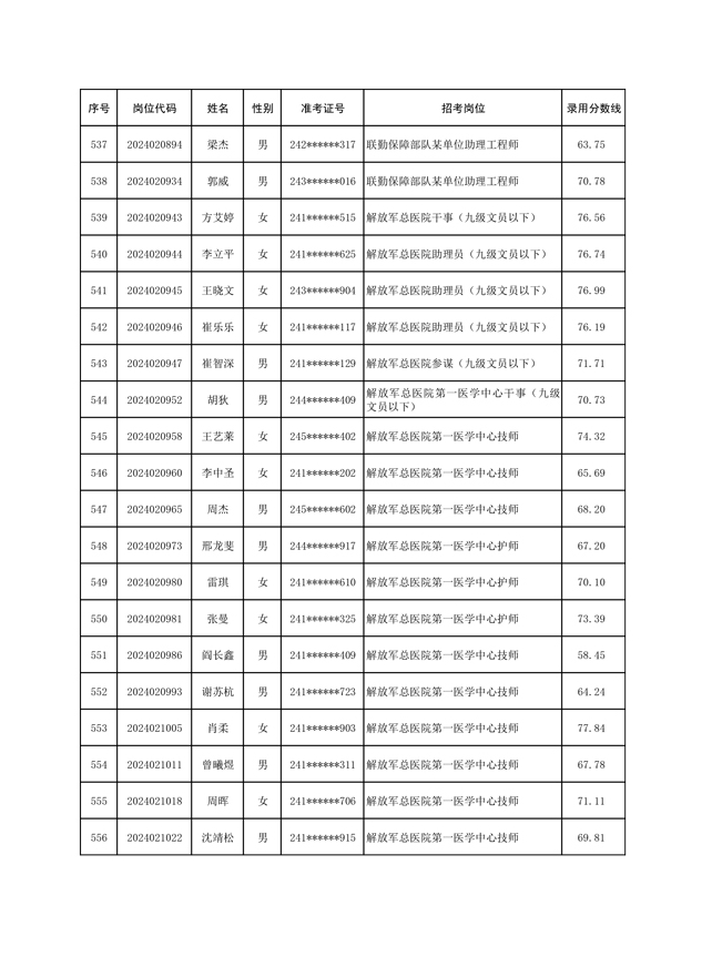 公示联勤保障部队2024年公开招考文职人员第一批拟录用对象名单