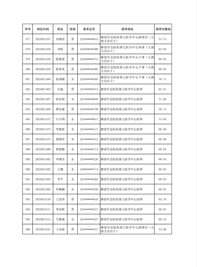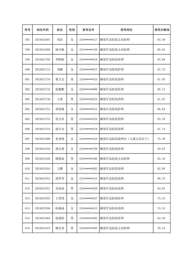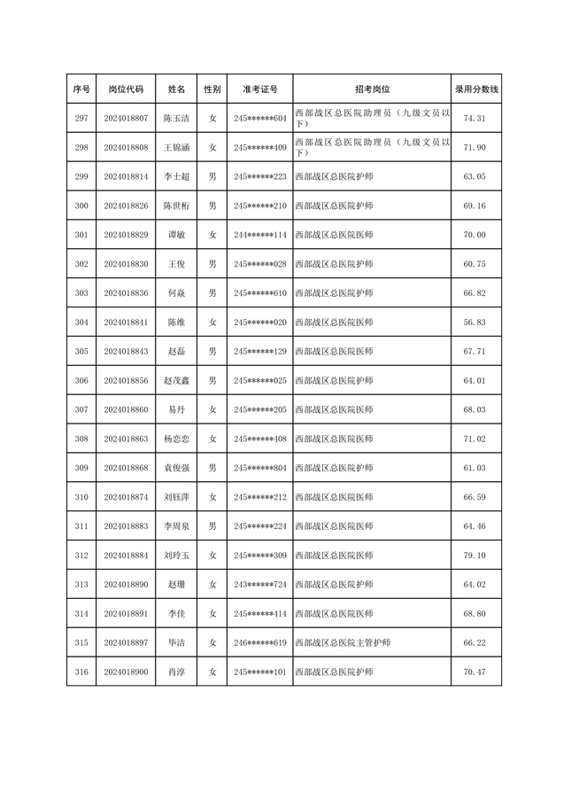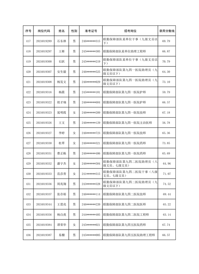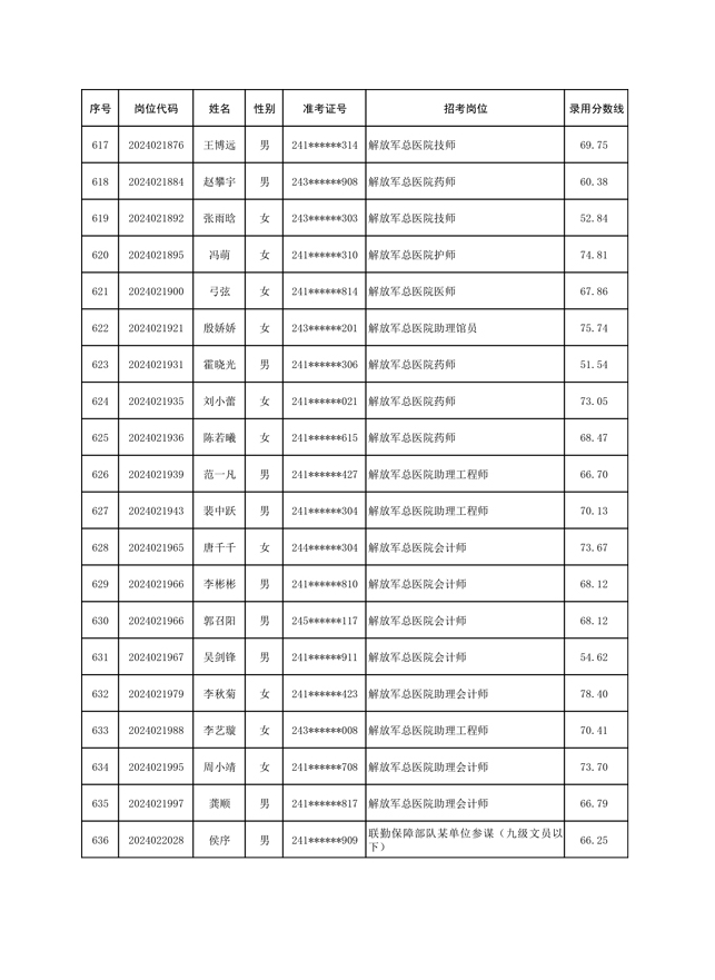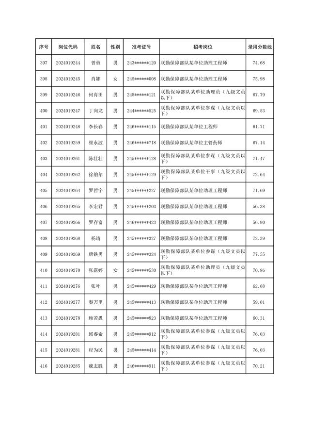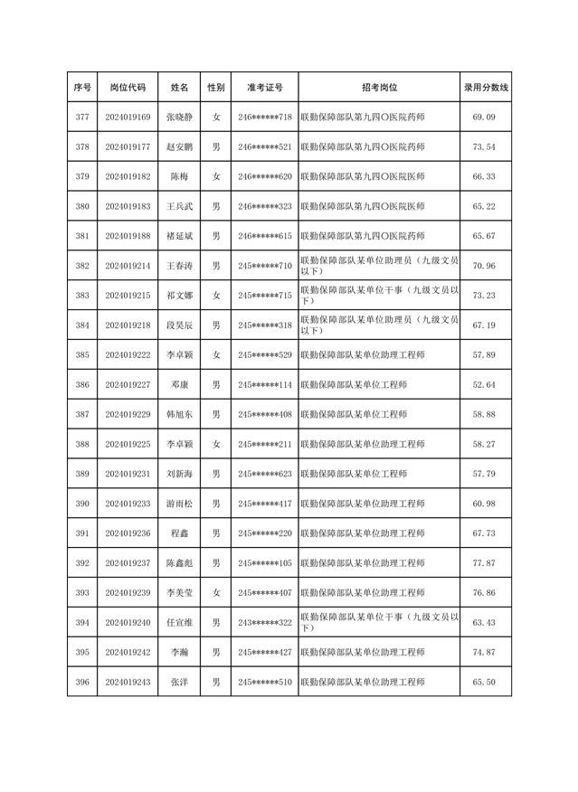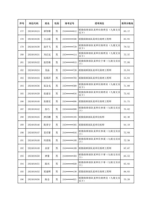 公示联勤保障部队2024年公开招考文职人员第一批拟录用对象名单