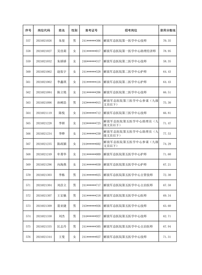 公示中央军委后勤保障部2024年公开招考文职人员拟录用对象名单