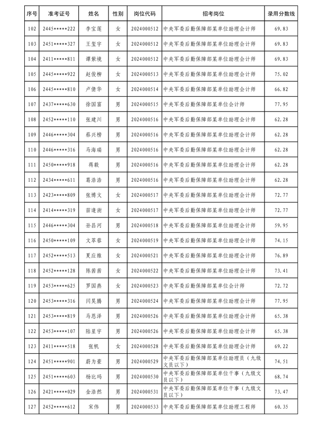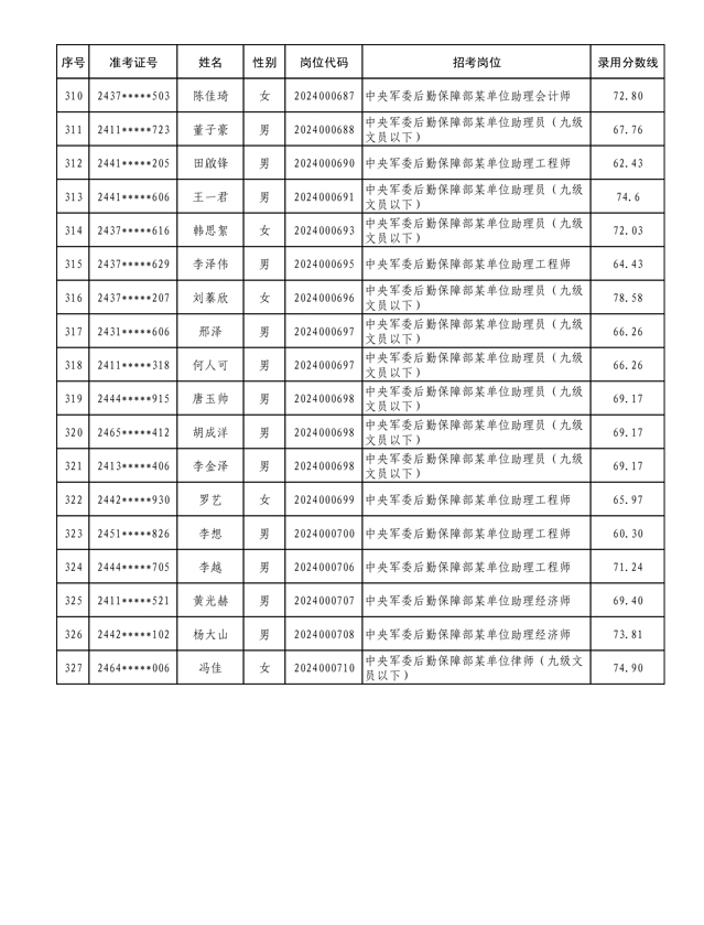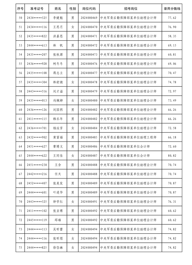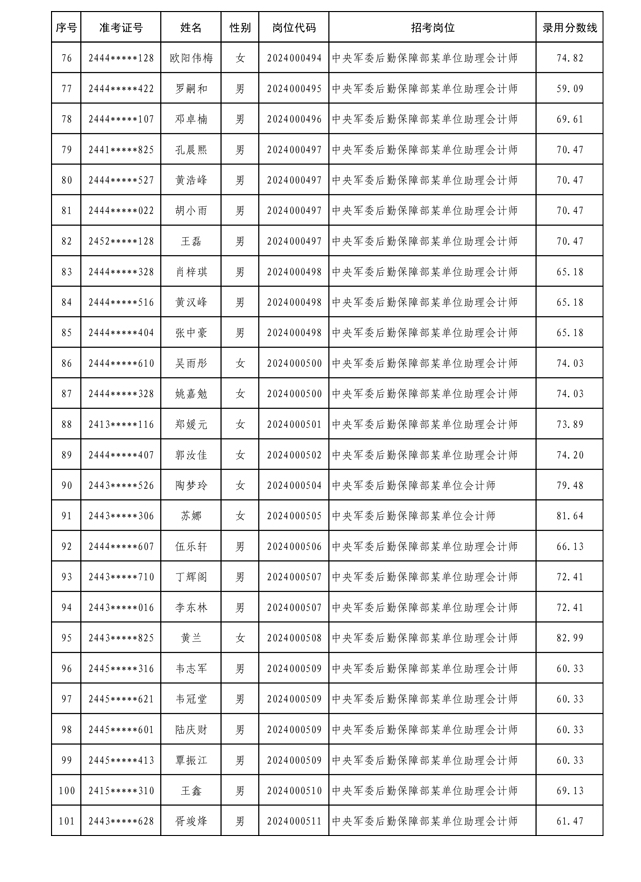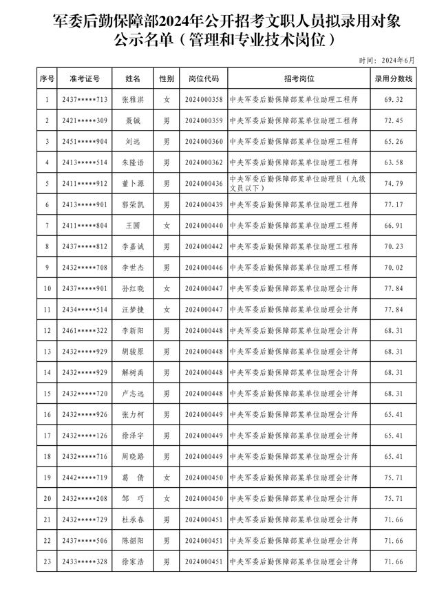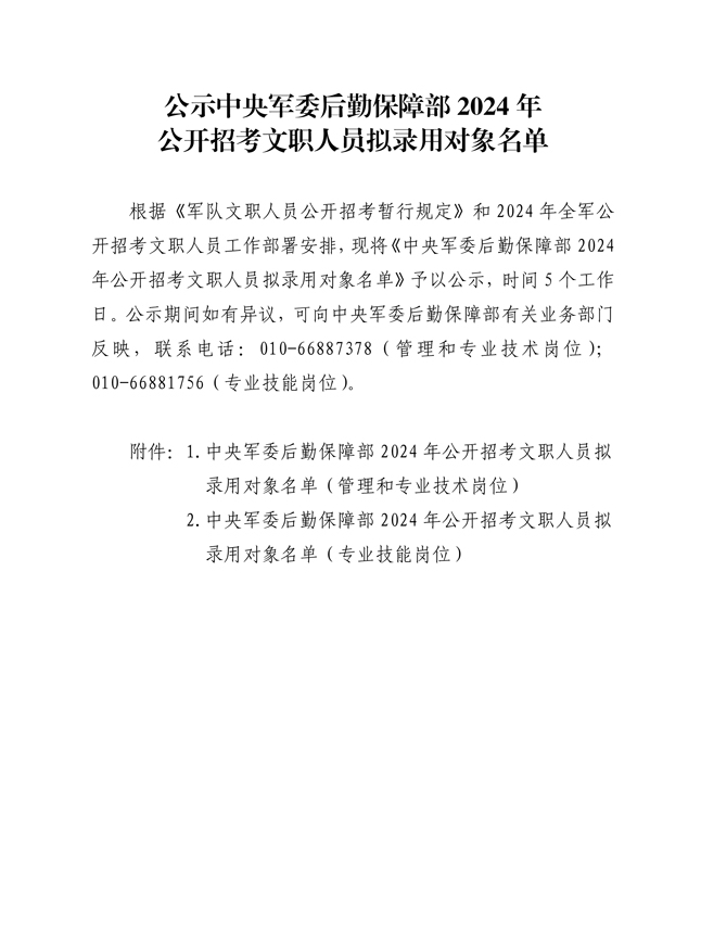 公示中央军委后勤保障部2024年公开招考文职人员拟录用对象名单