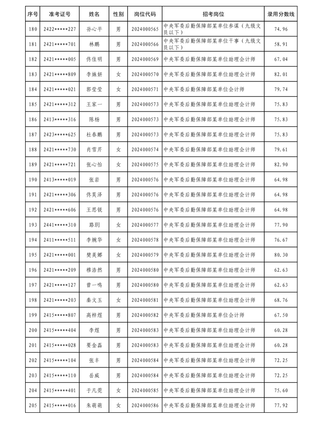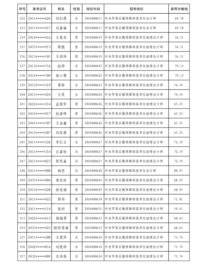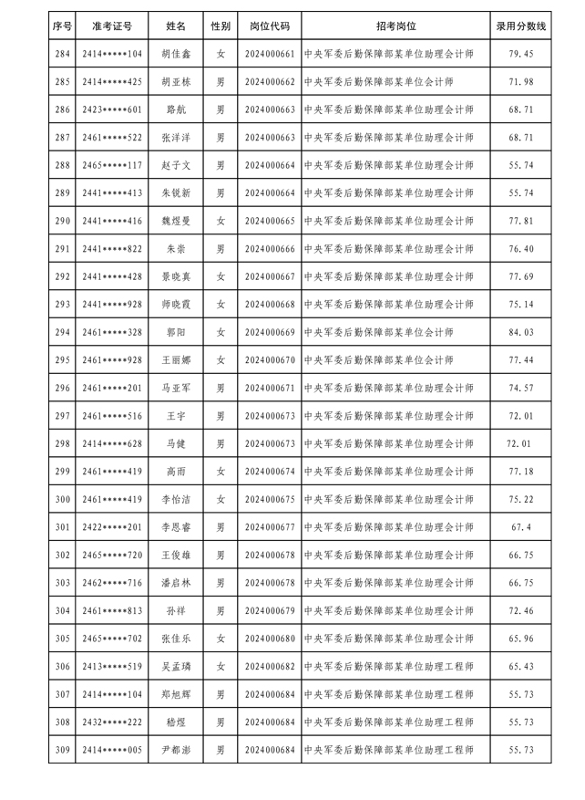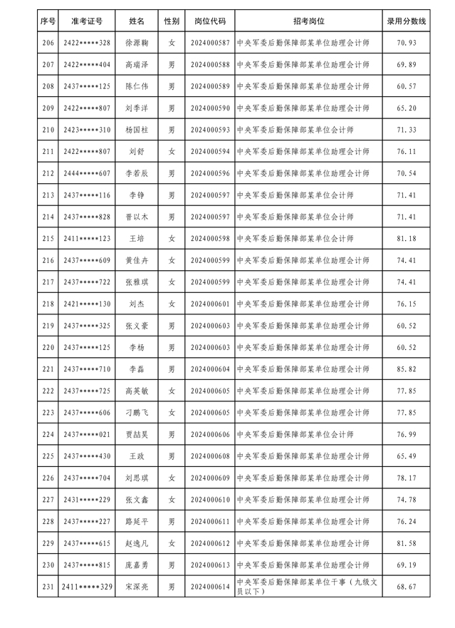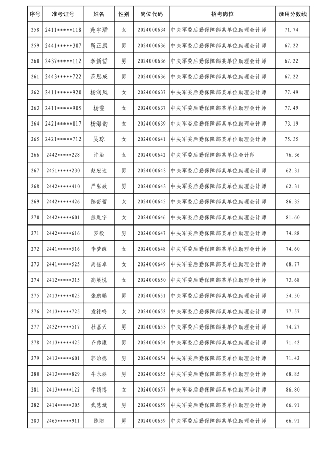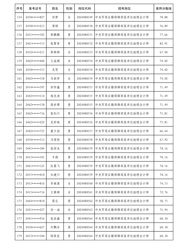 公示中央军委后勤保障部2024年公开招考文职人员拟录用对象名单