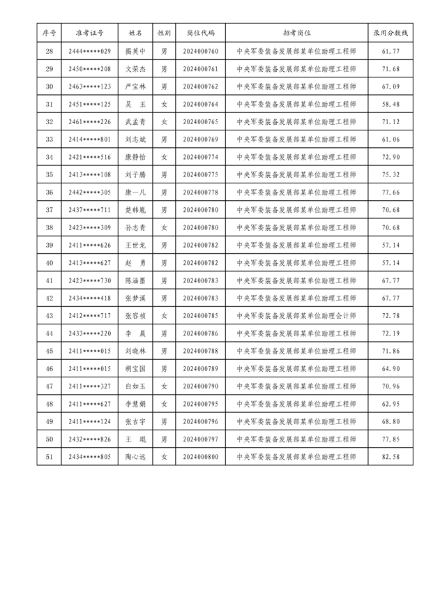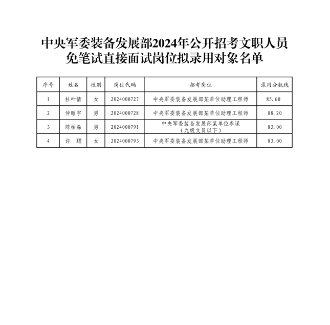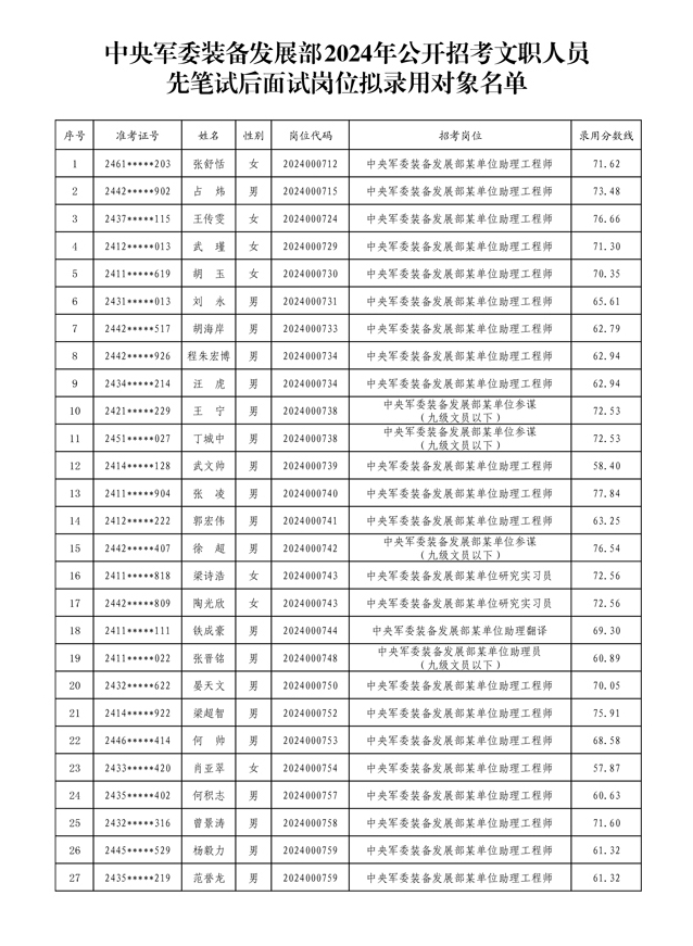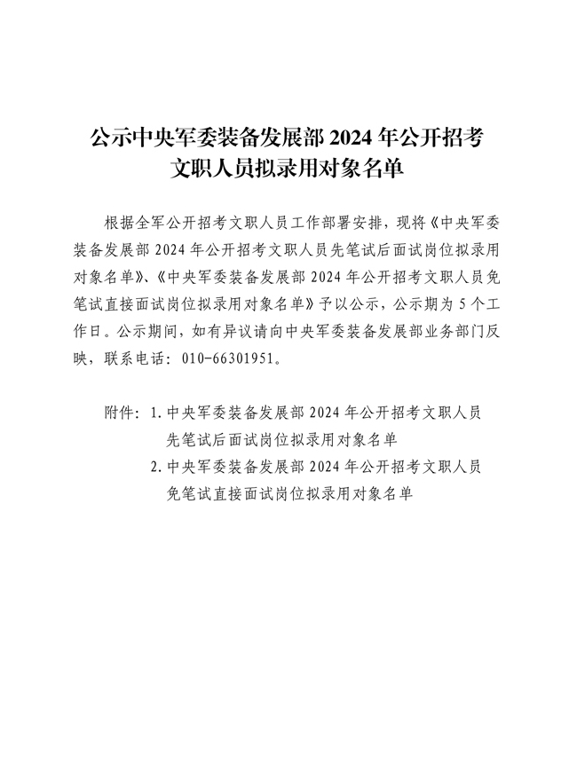 公示中央军委装备发展部2024年公开招考文职人员拟录用对象名单