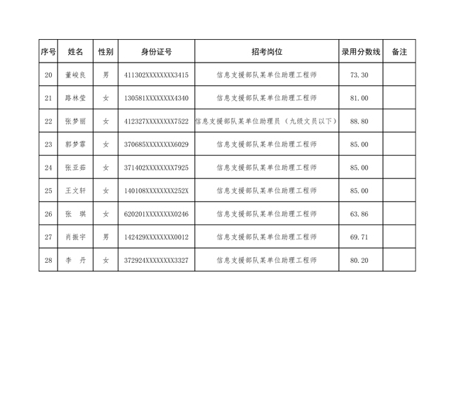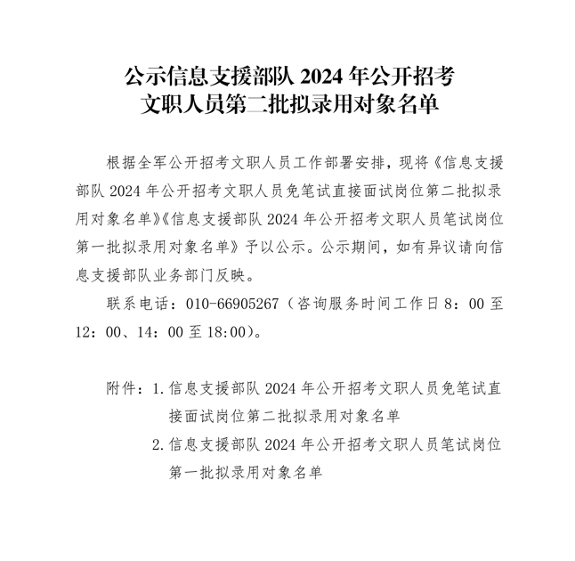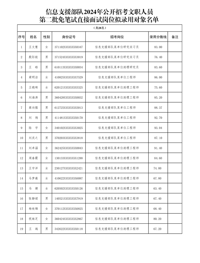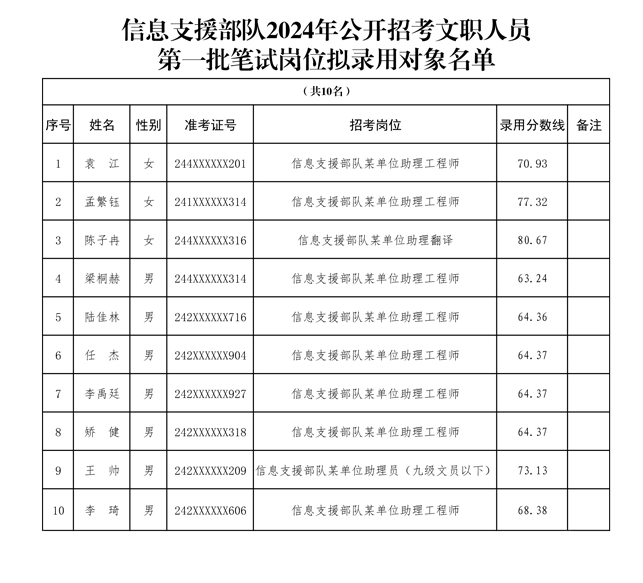 公示信息支援部队2024年公开招考文职人员第二批拟录用对象名单
