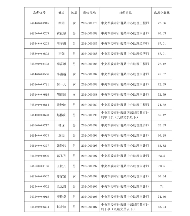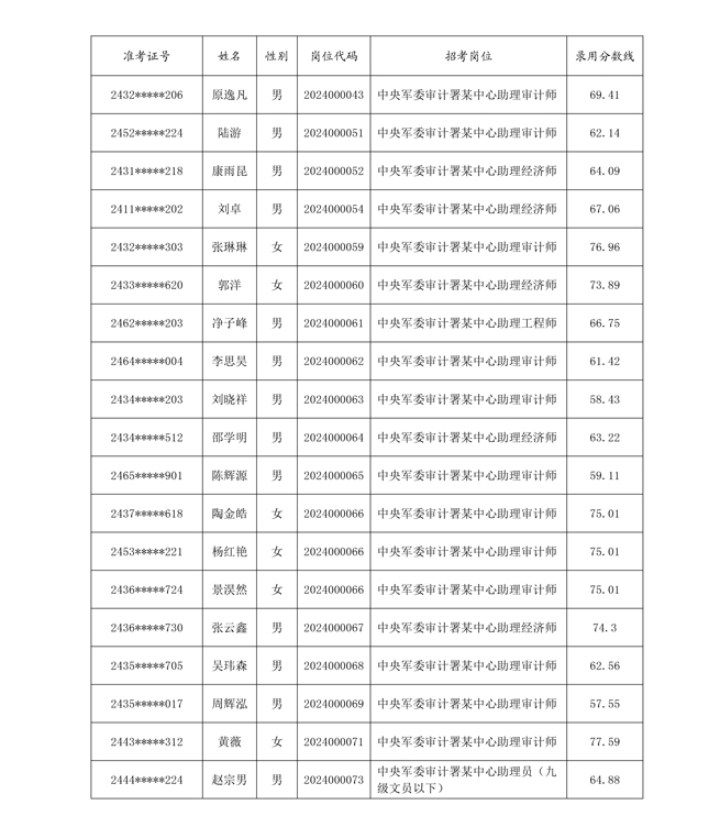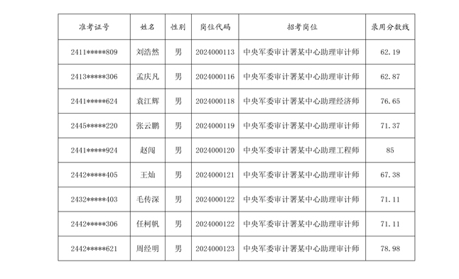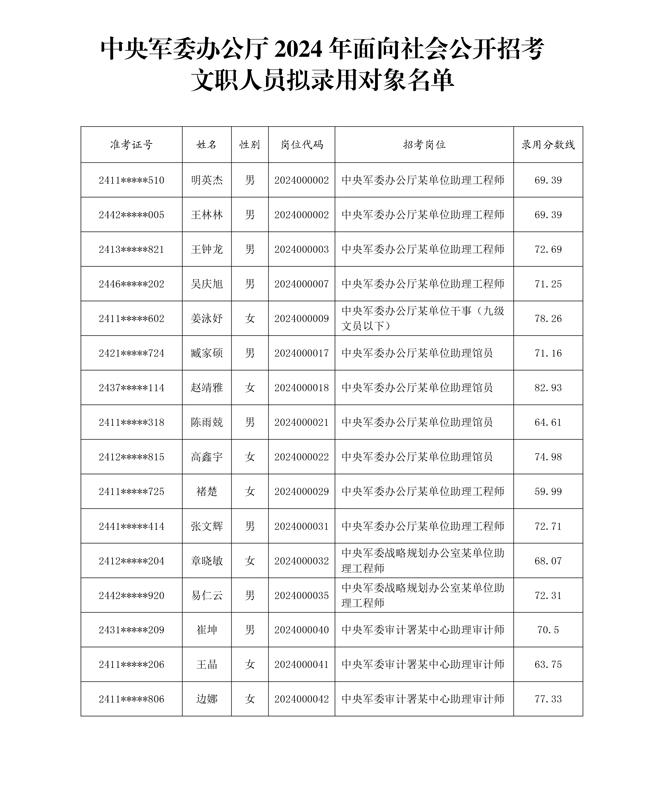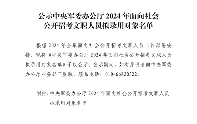 公示中央军委办公厅2024年面向社会公开招考文职人员拟录用对象名单