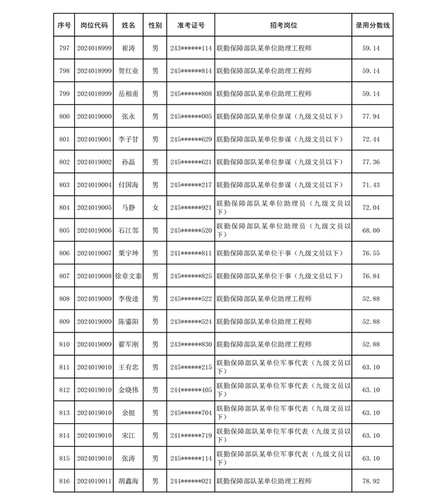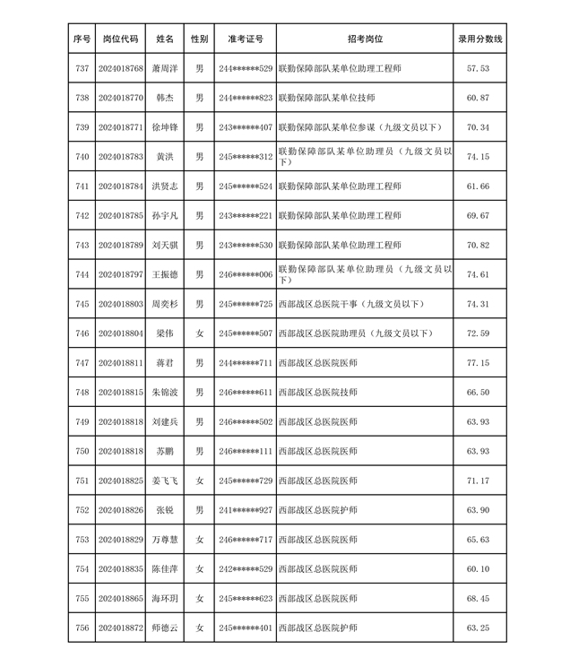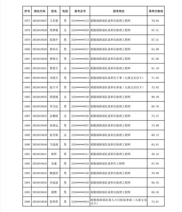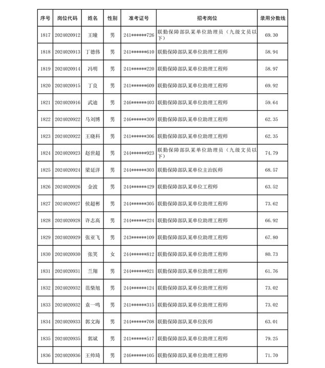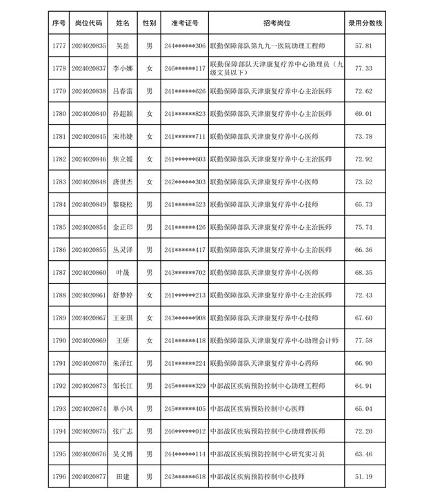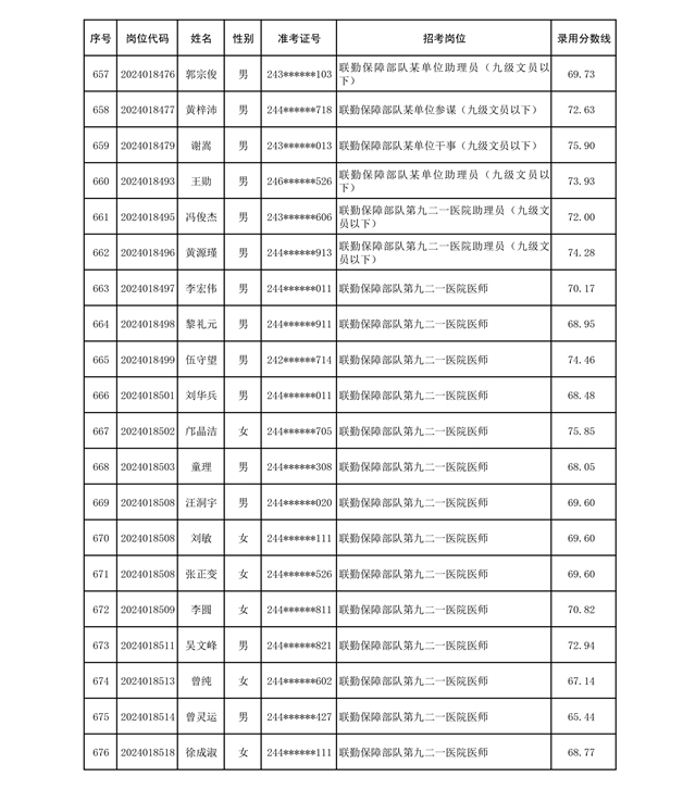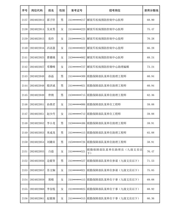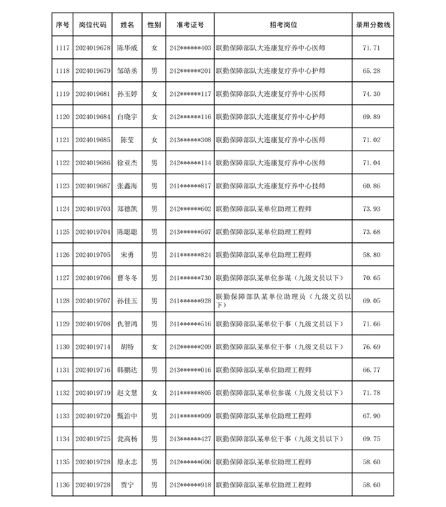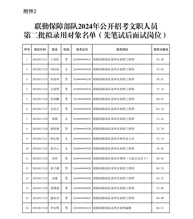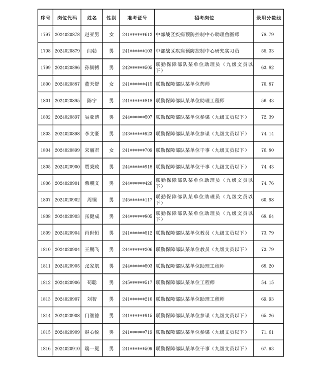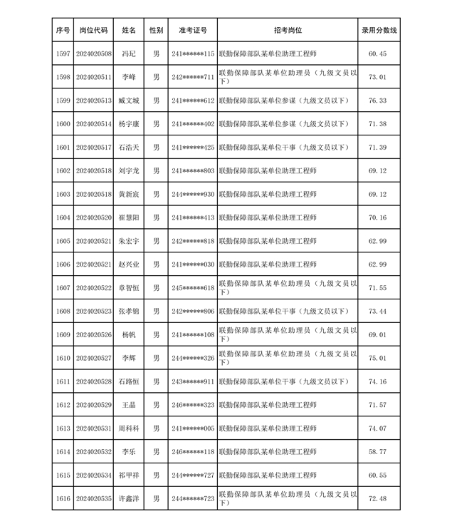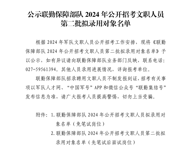 公示联勤保障部队2024年公开招考文职人员第二批拟录用对象名单