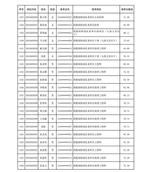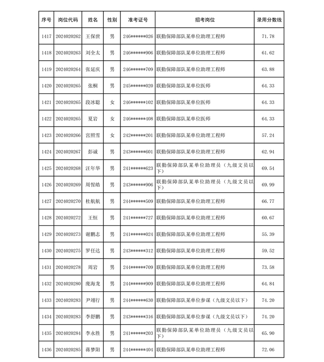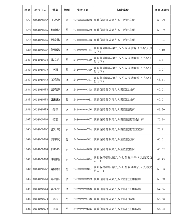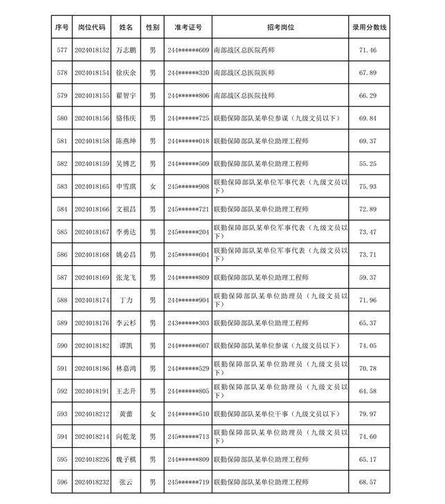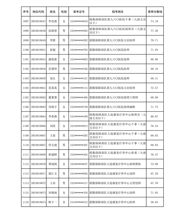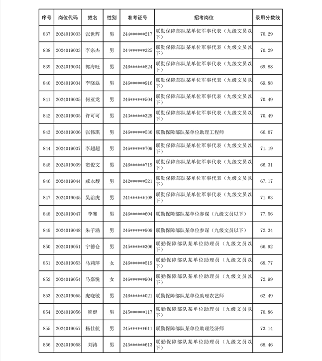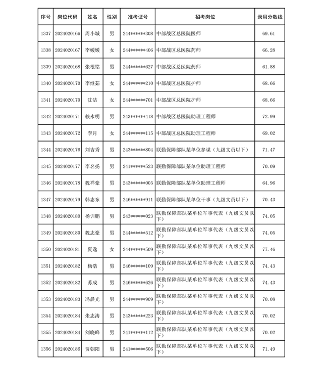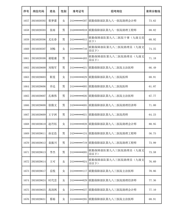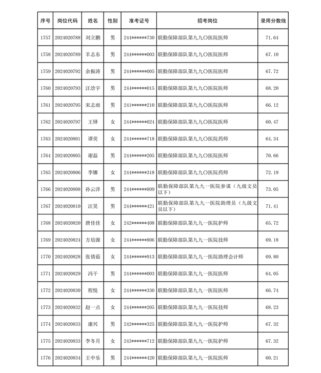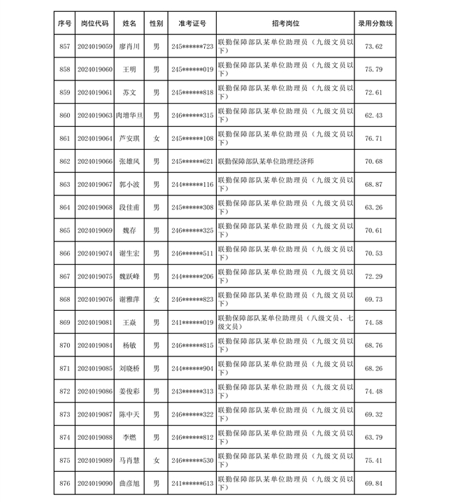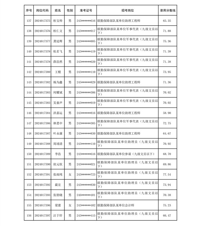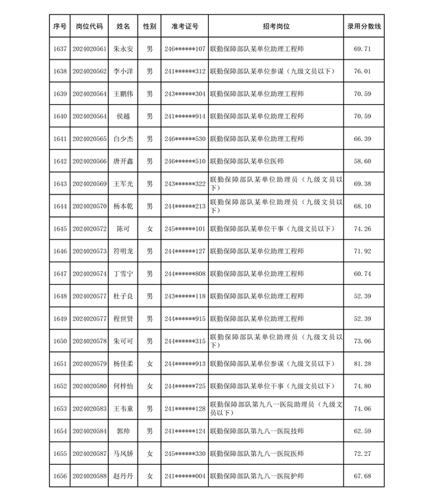 公示联勤保障部队2024年公开招考文职人员第二批拟录用对象名单