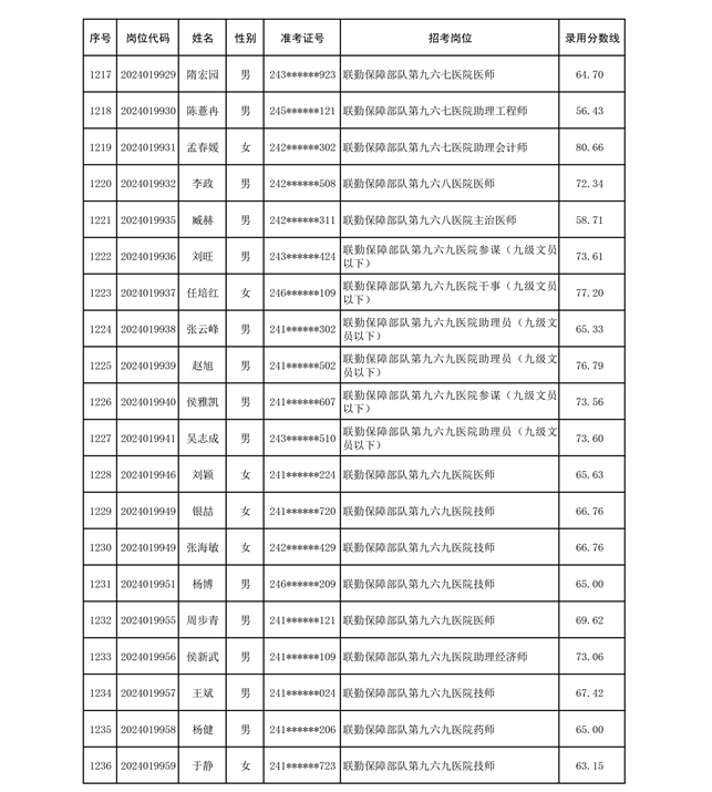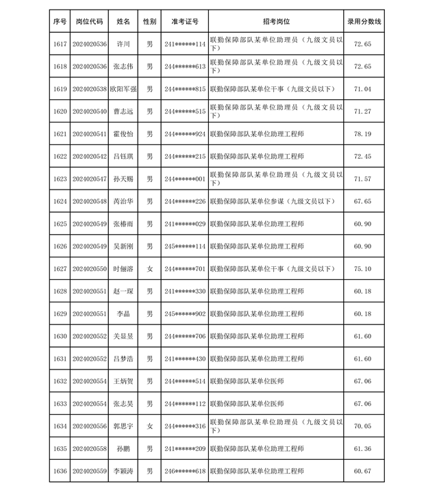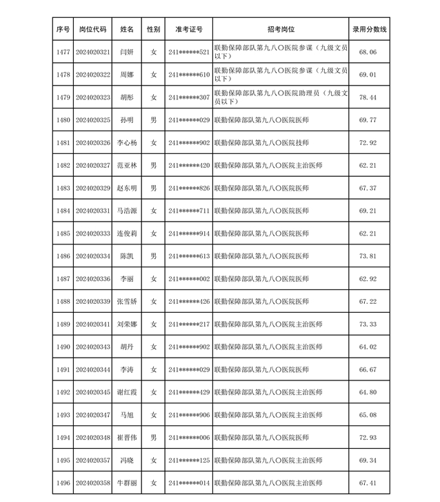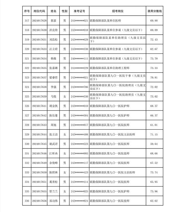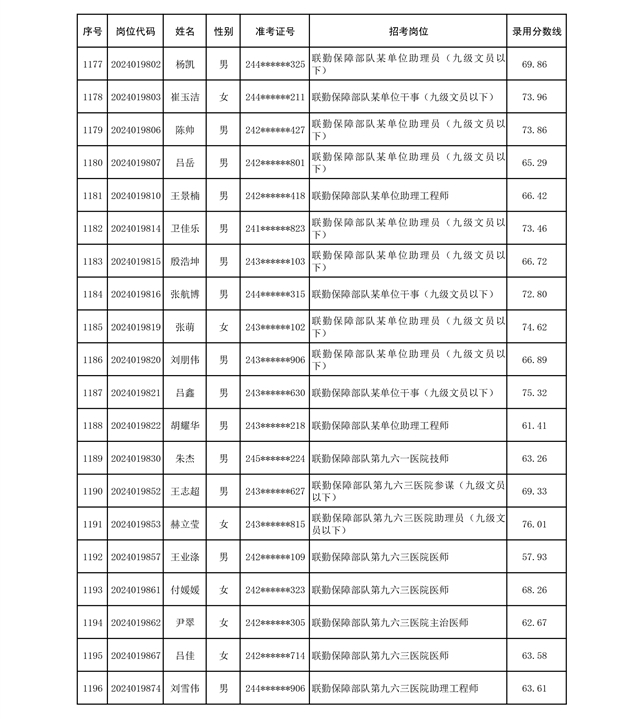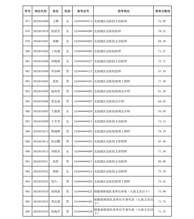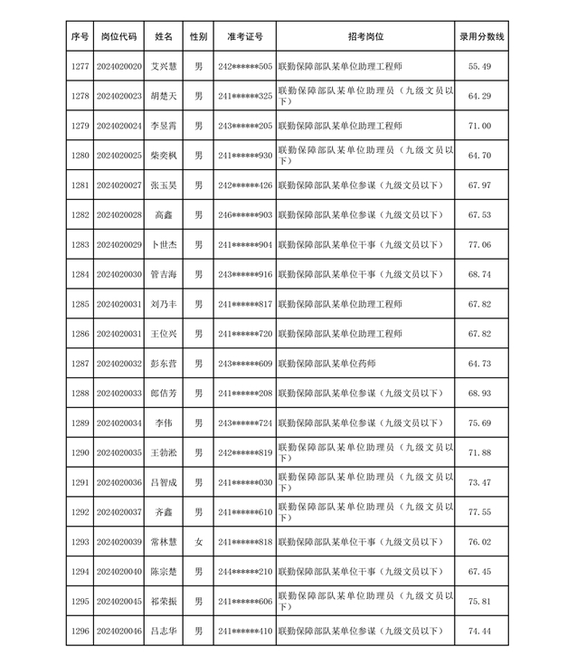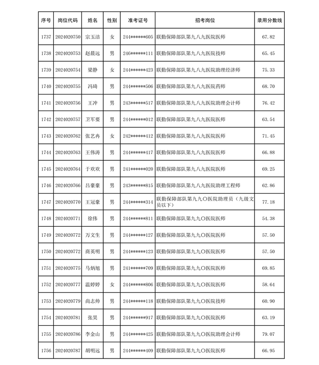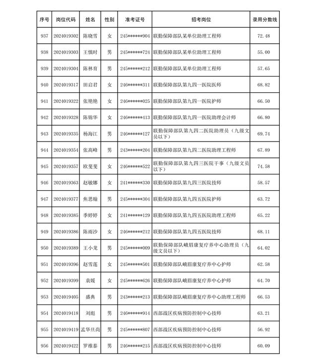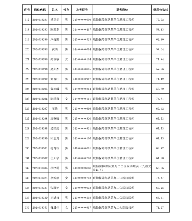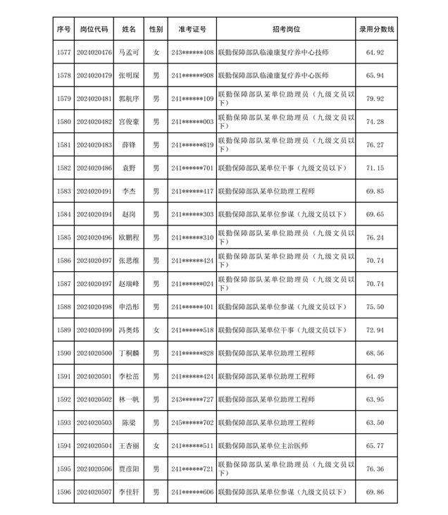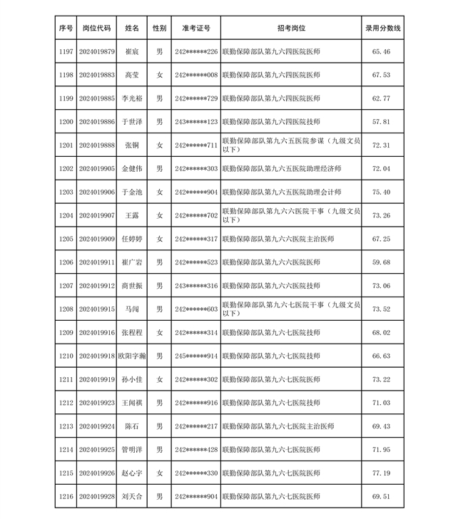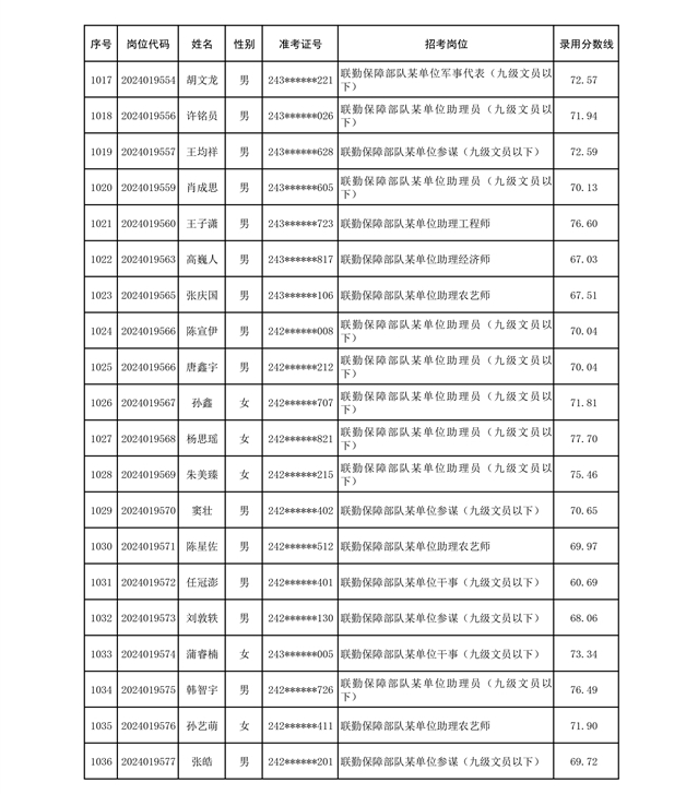 公示联勤保障部队2024年公开招考文职人员第二批拟录用对象名单