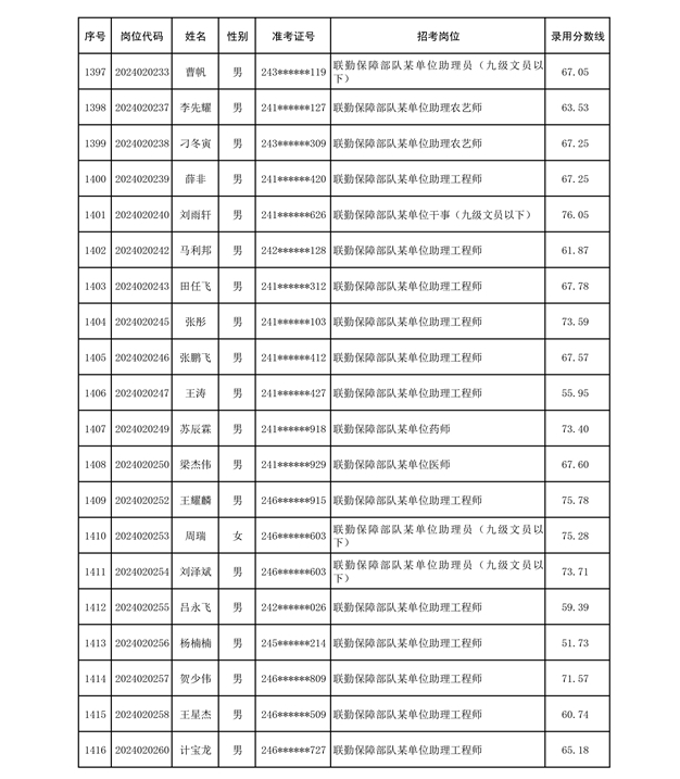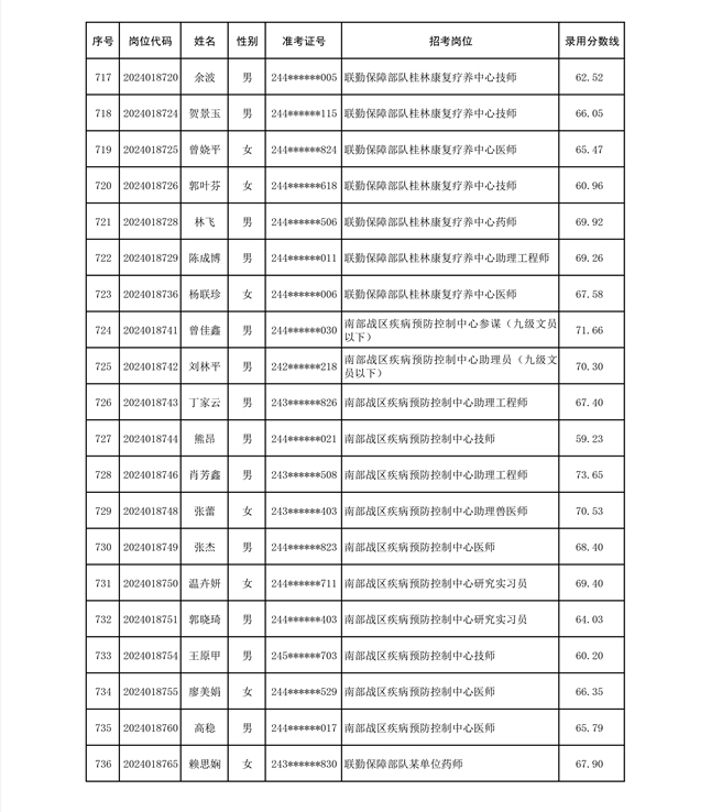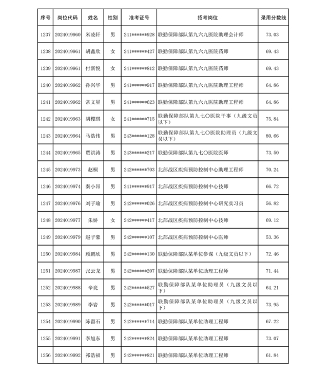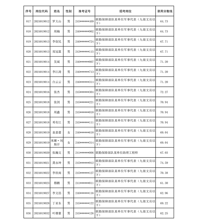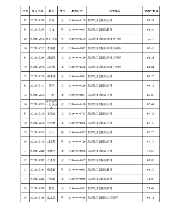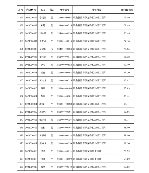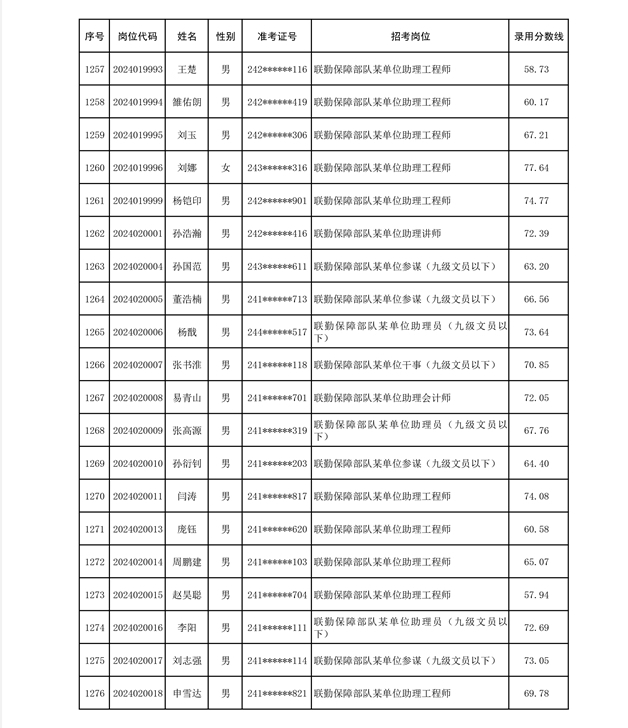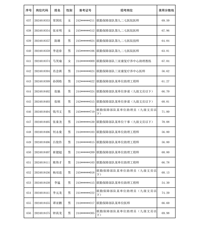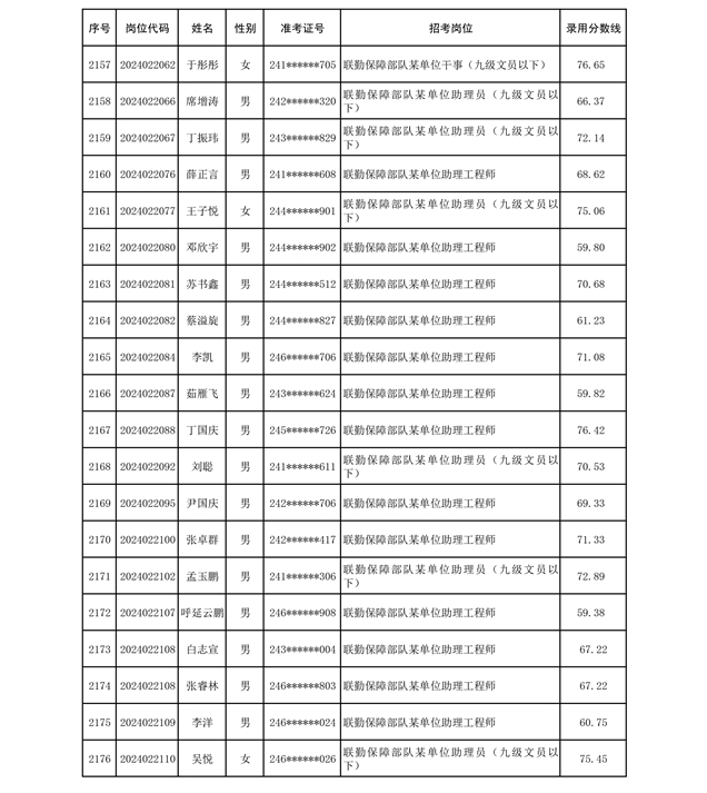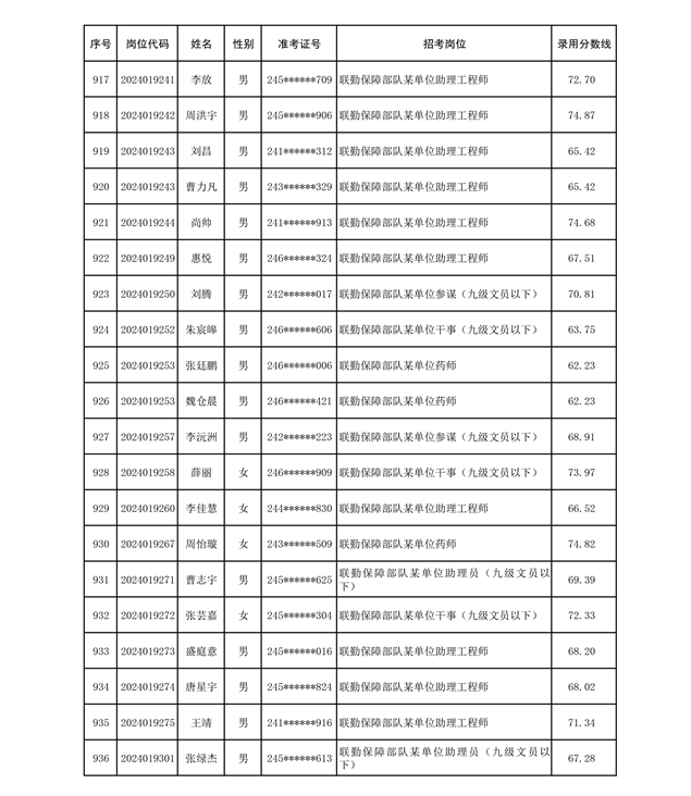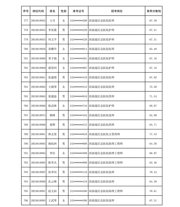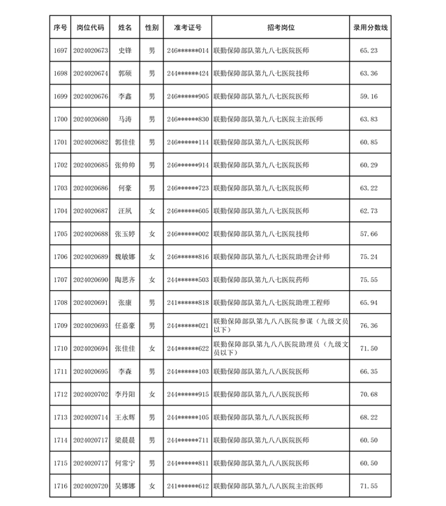 公示联勤保障部队2024年公开招考文职人员第二批拟录用对象名单