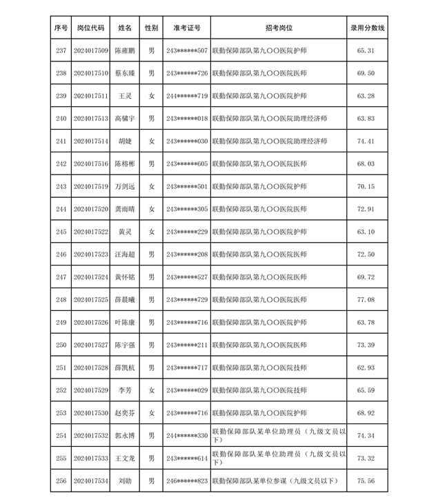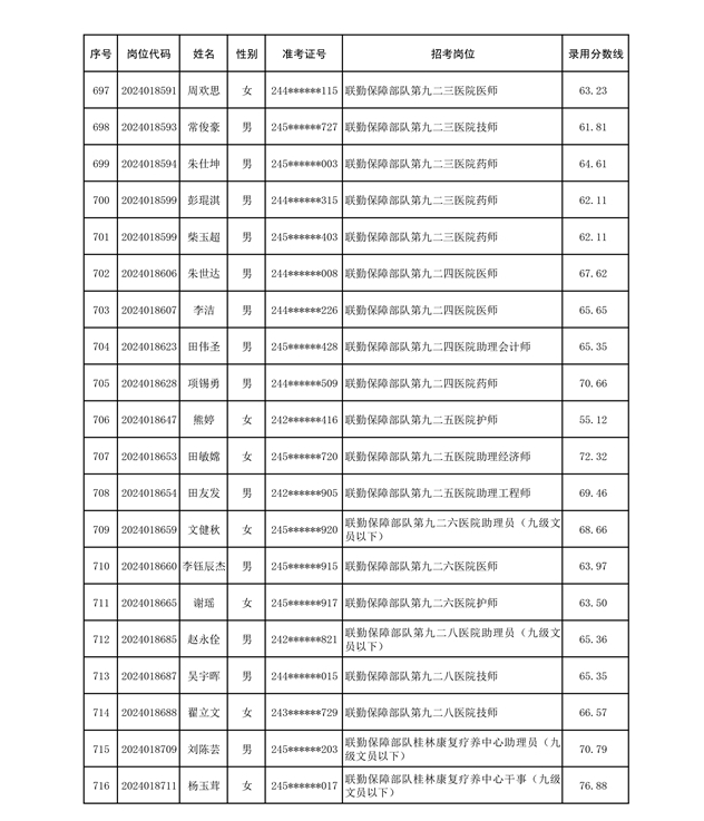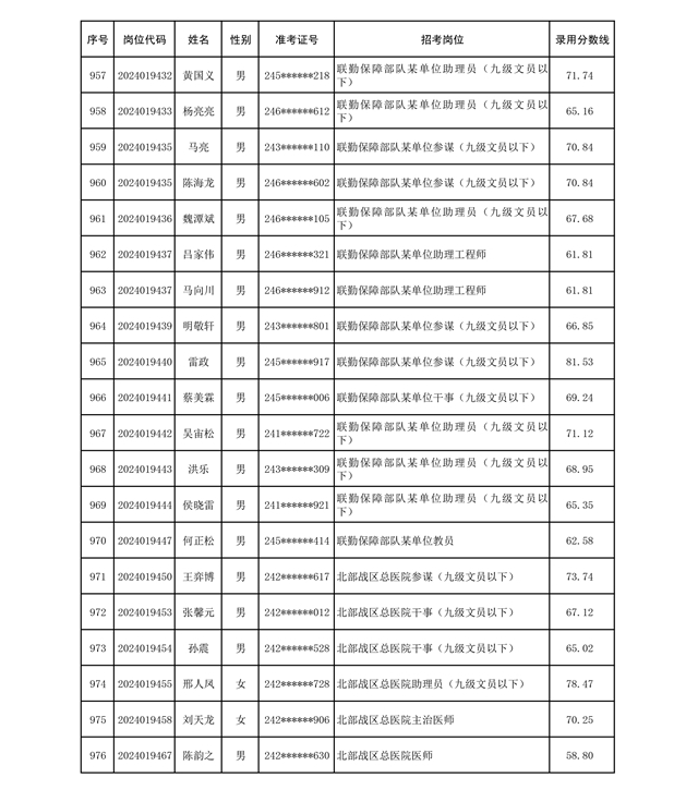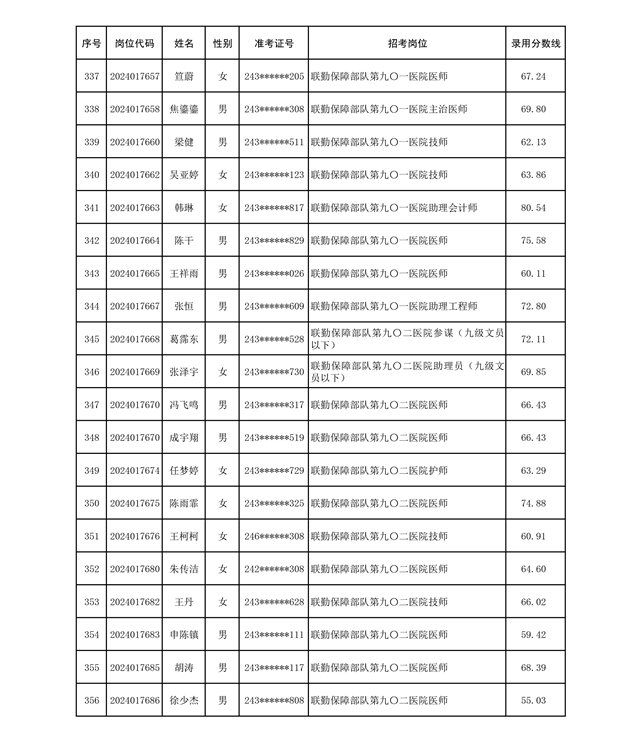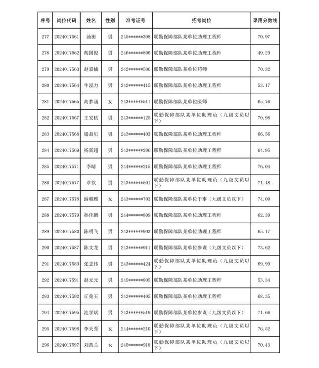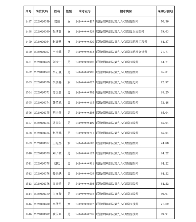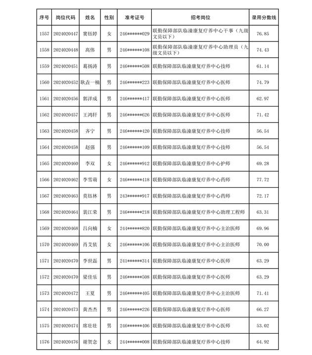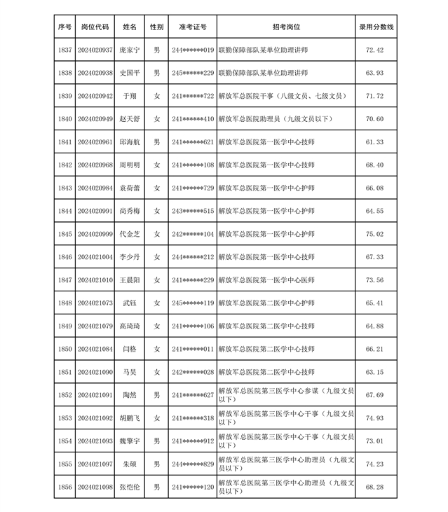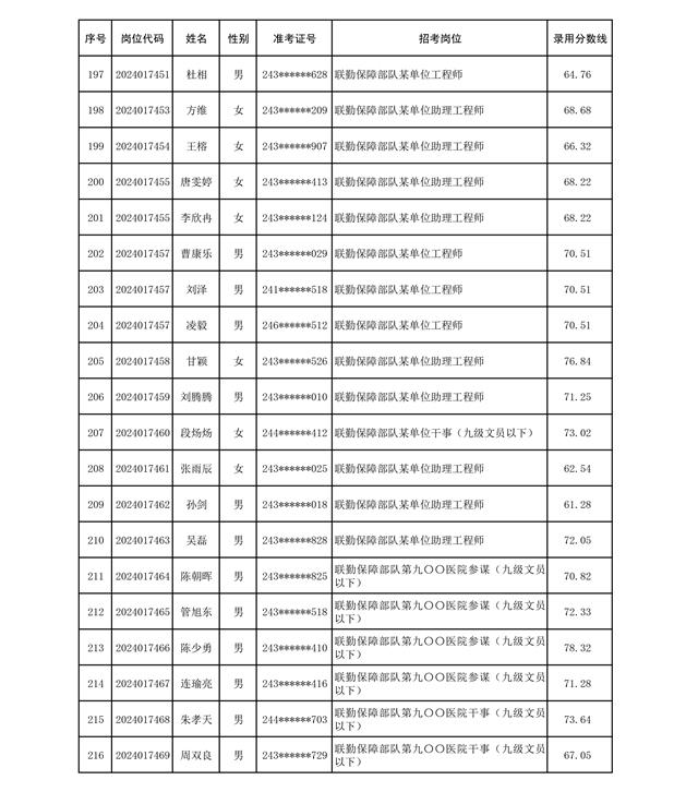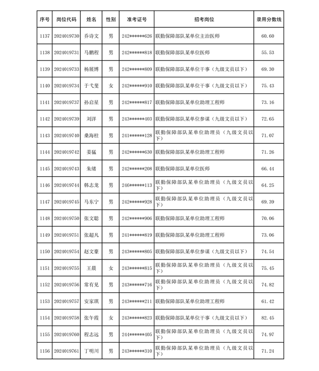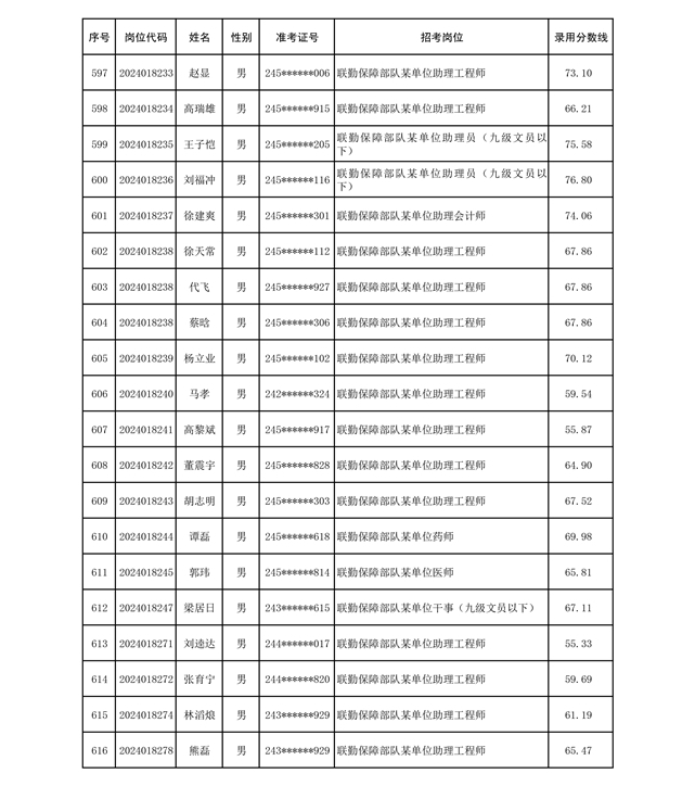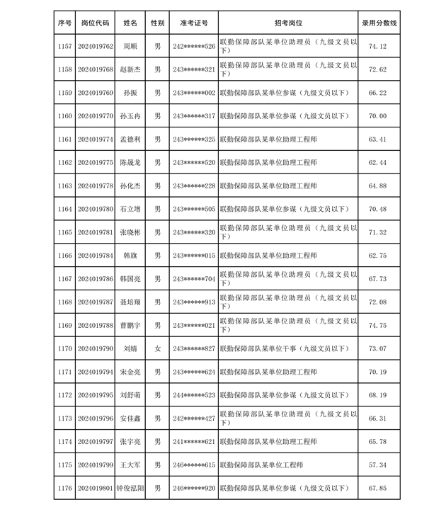 公示联勤保障部队2024年公开招考文职人员第二批拟录用对象名单