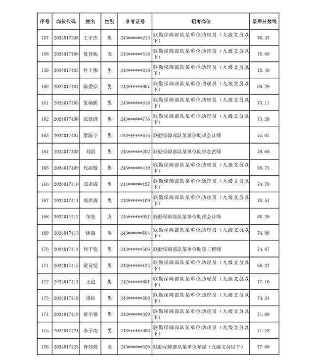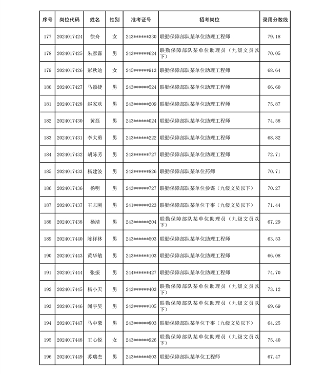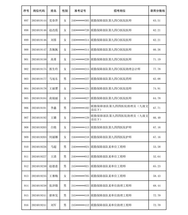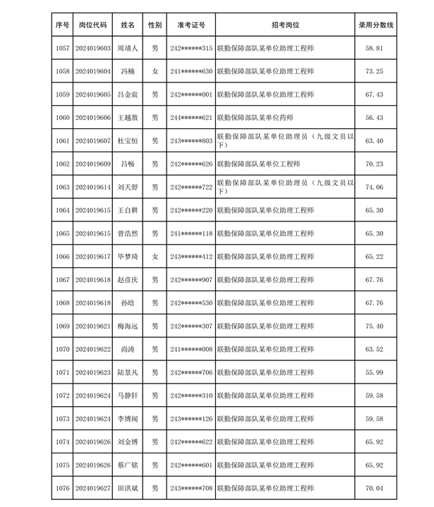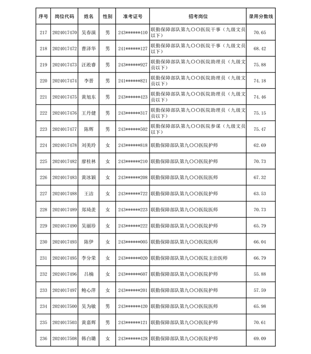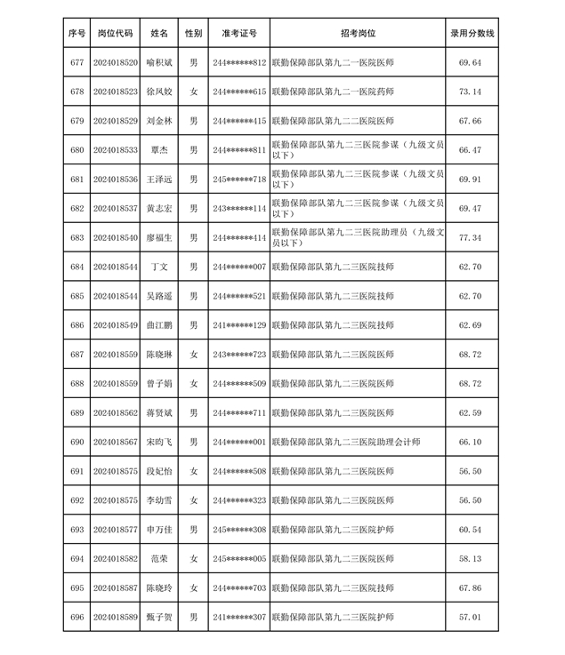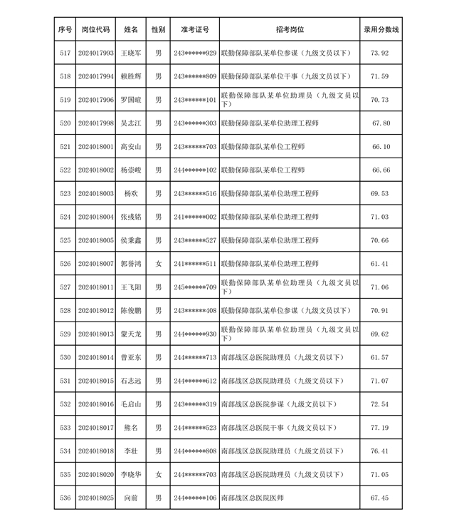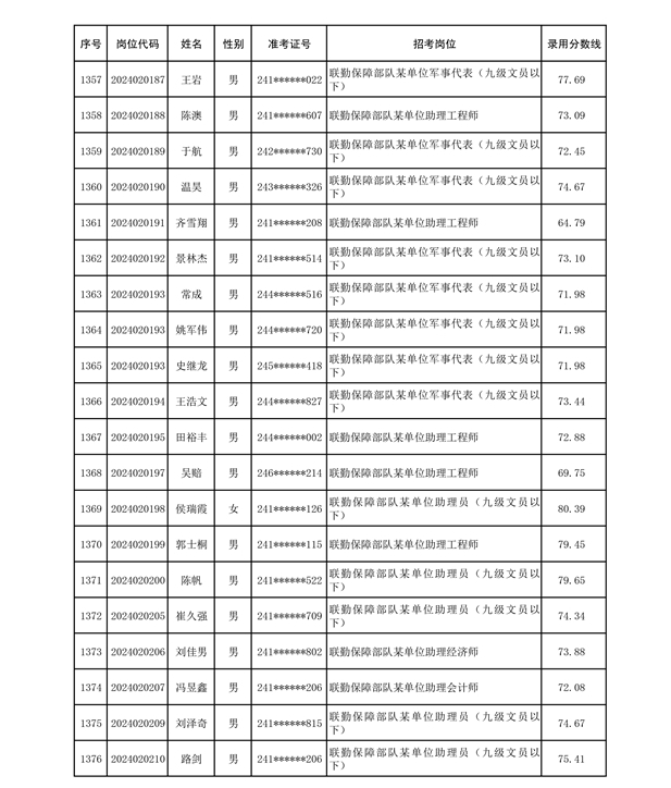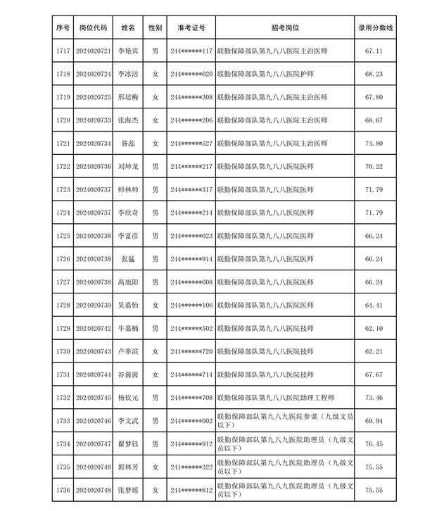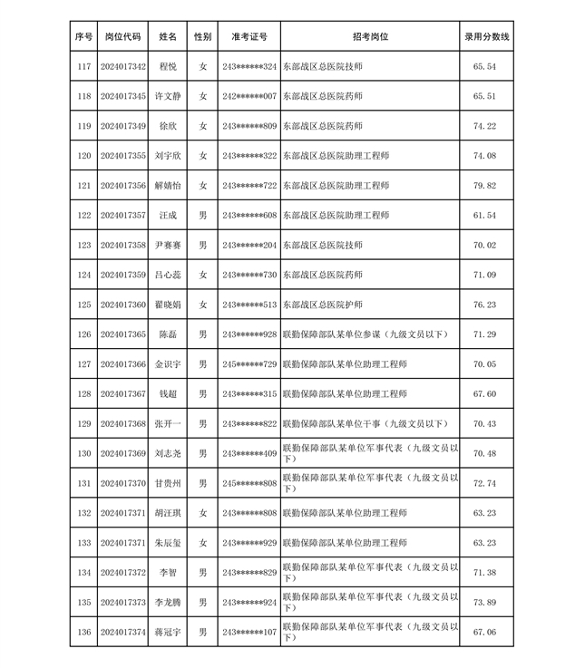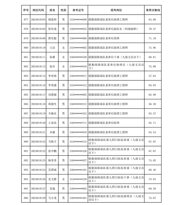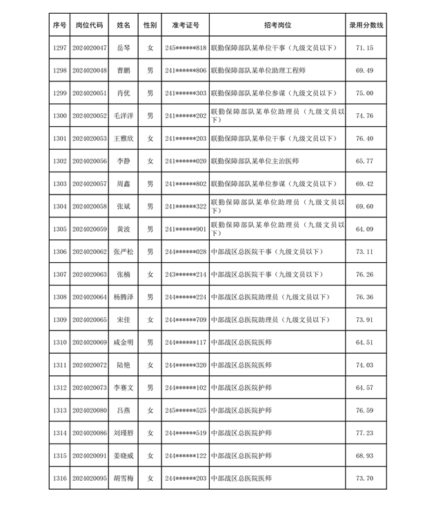 公示联勤保障部队2024年公开招考文职人员第二批拟录用对象名单